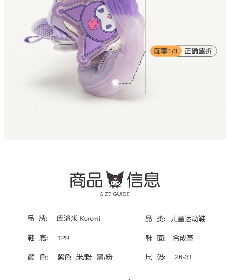 hellokitty童鞋冬季库洛米儿童运动鞋26-31码 KU5546929