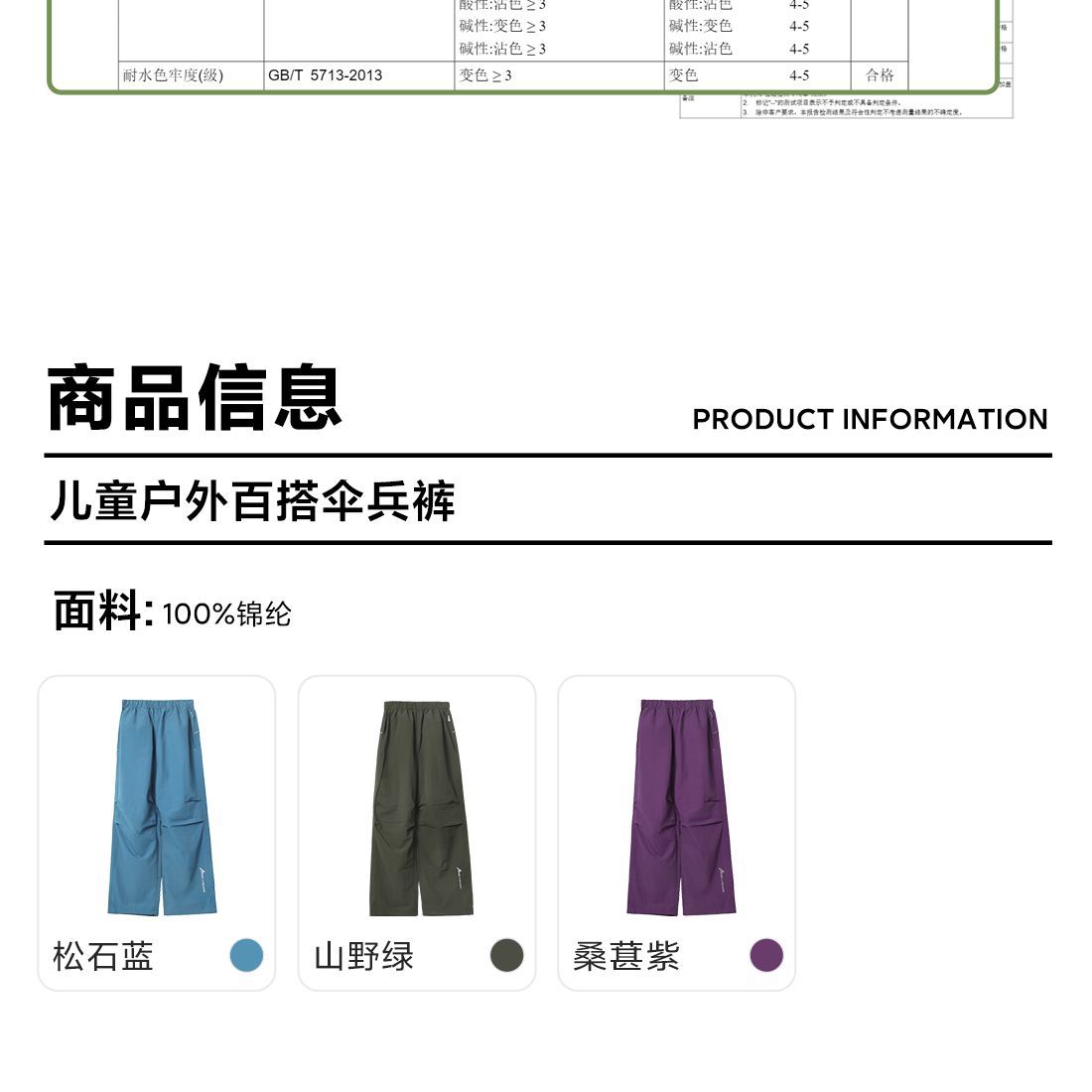 fx-咕噜日记儿童伞兵裤轻量裤子男童户外反光长裤百搭女童透气耐磨裤PQK2502