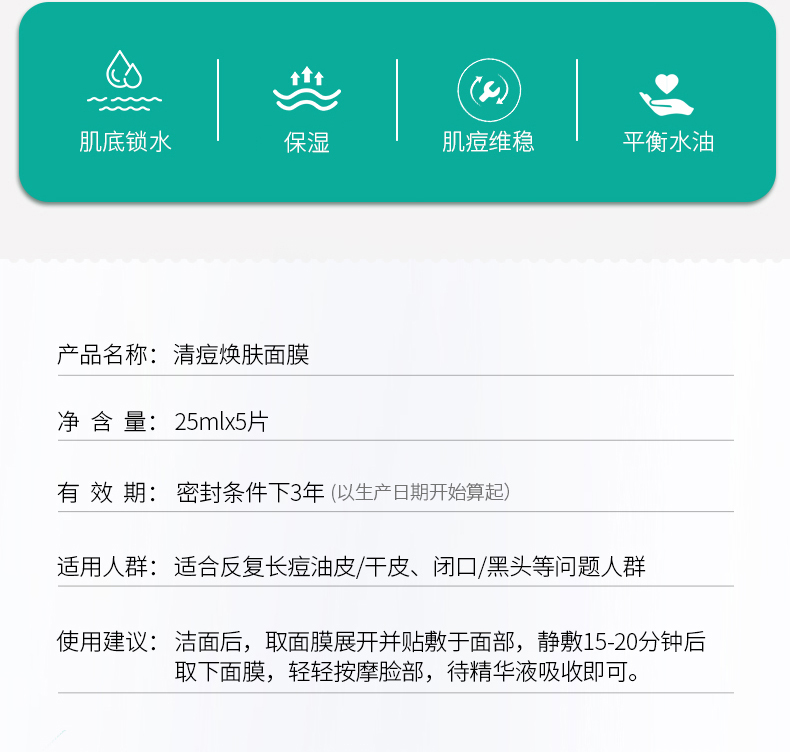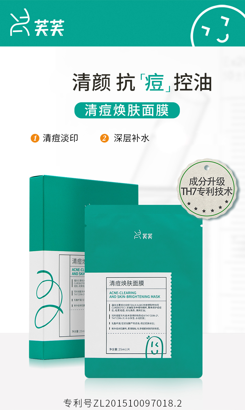 芙芙绿清痘焕肤面膜油皮痘肌净痘淡化豆印保湿男女粉刺闭口一盒5片