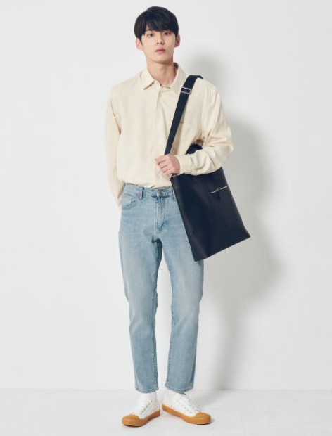 8 seconds 天空蓝色基本水洗锥形牛仔裤#421121CPFQJPY带授权招加盟代理