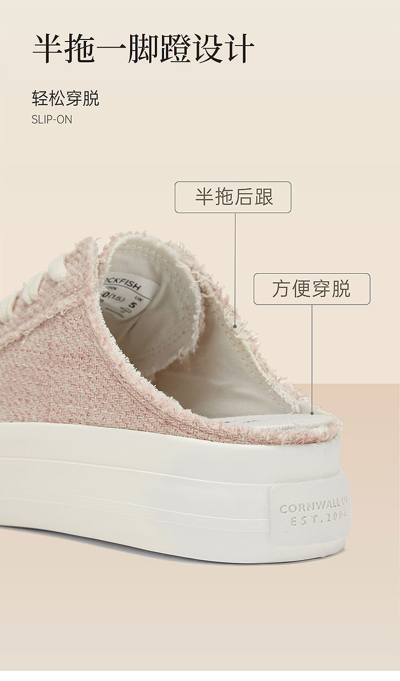 Rockfish 英国766厚底小方糖低帮增高方头帆布一脚蹬拖鞋出游穿搭