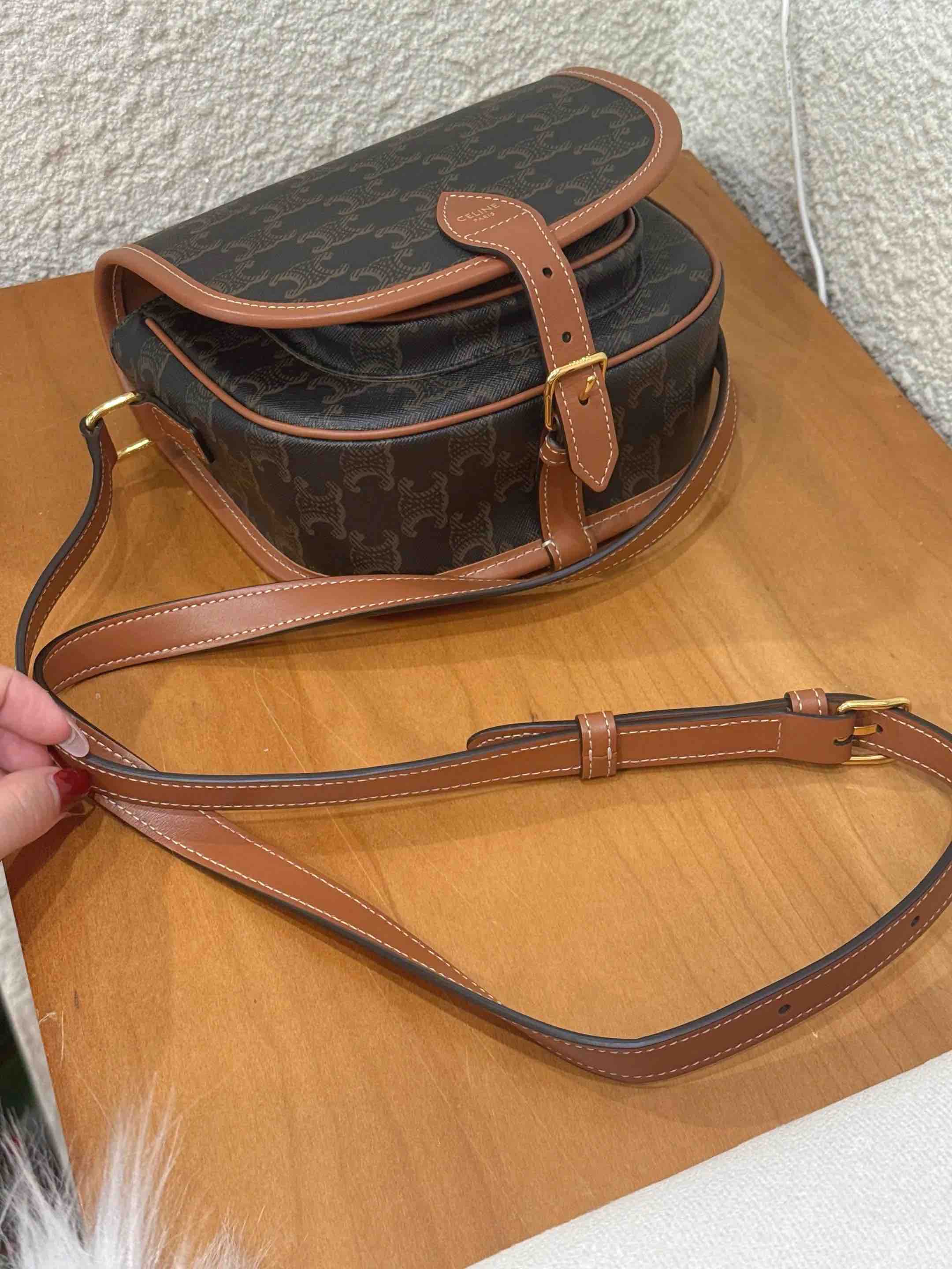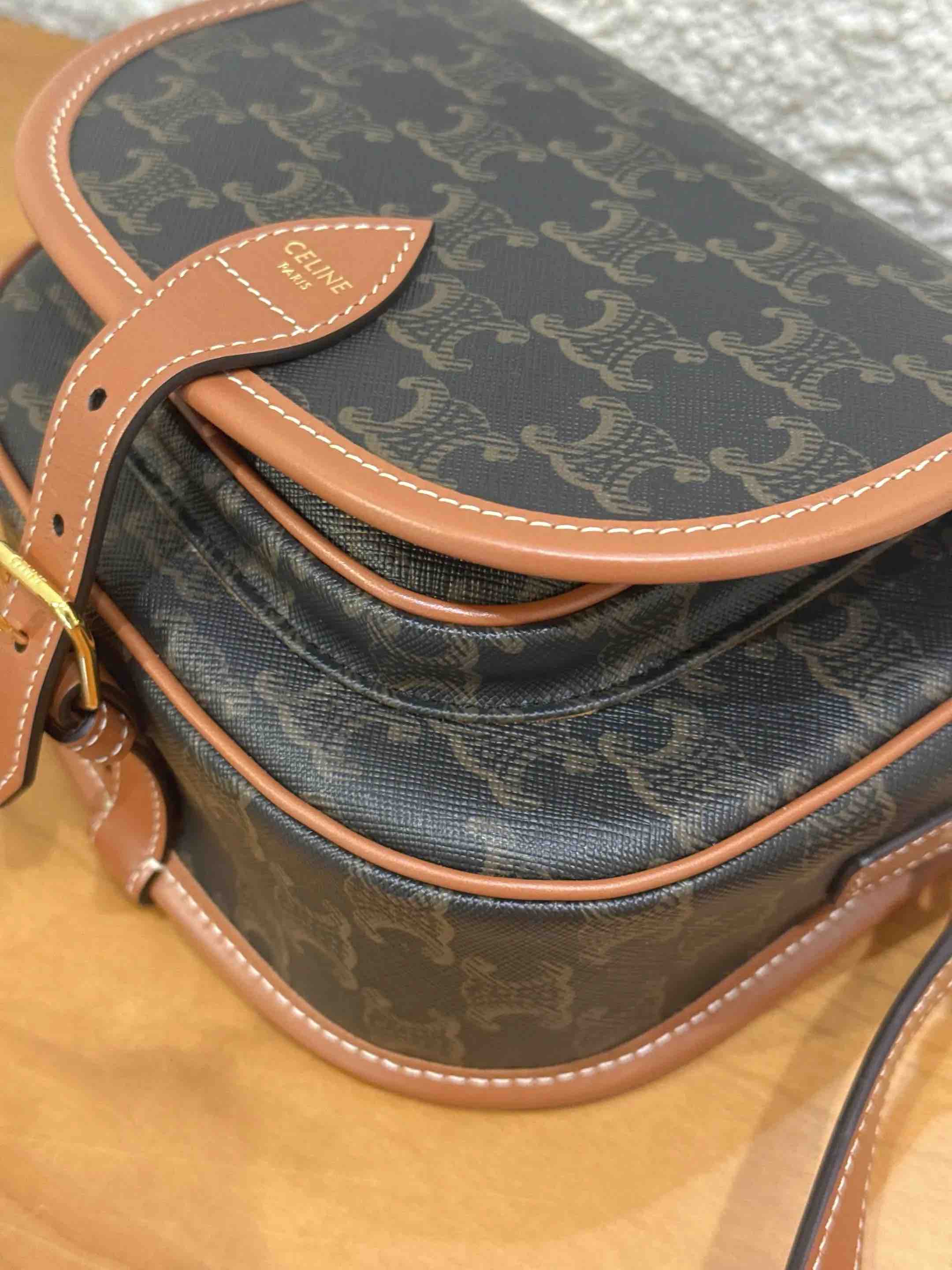 Celine Folco 黑色 老花 马鞍包