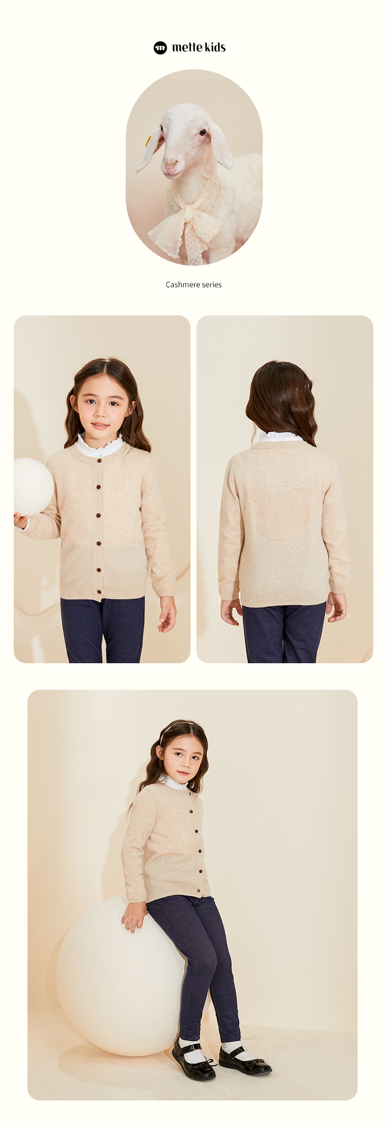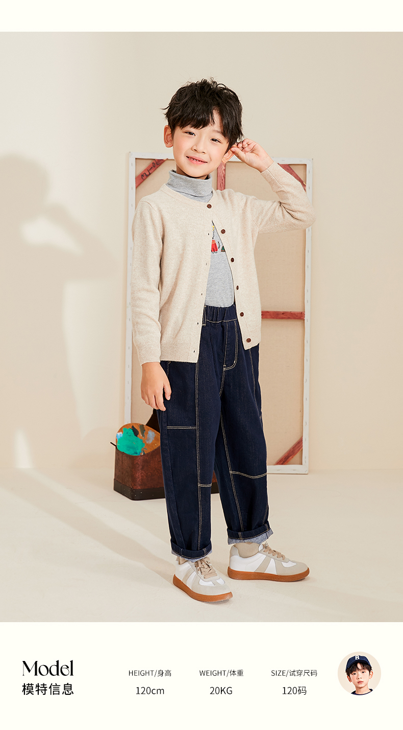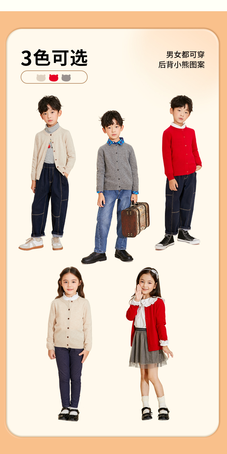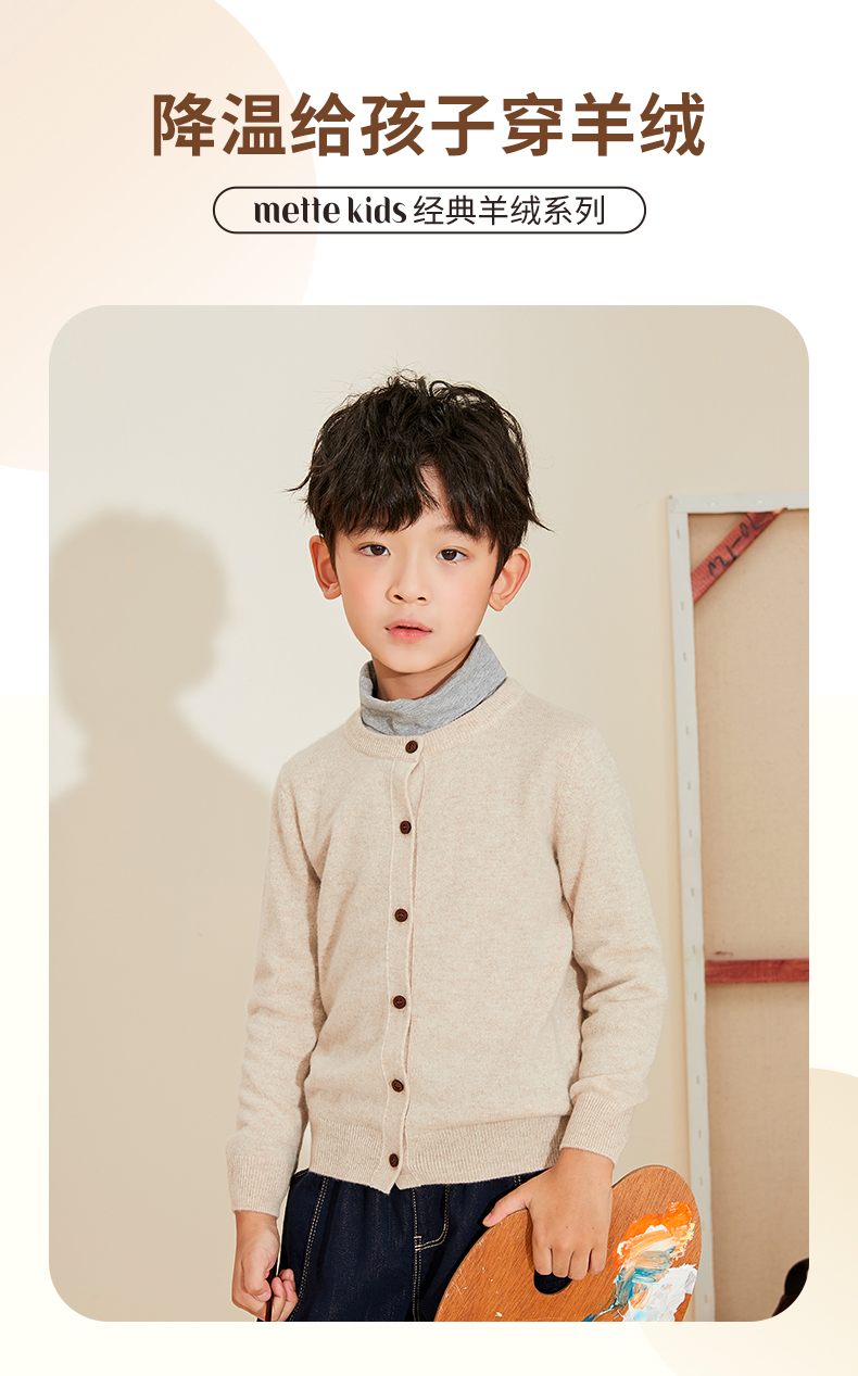 mettekids儿童羊绒衫男童春秋新款针织开衫中大女童可爱卡通毛衣