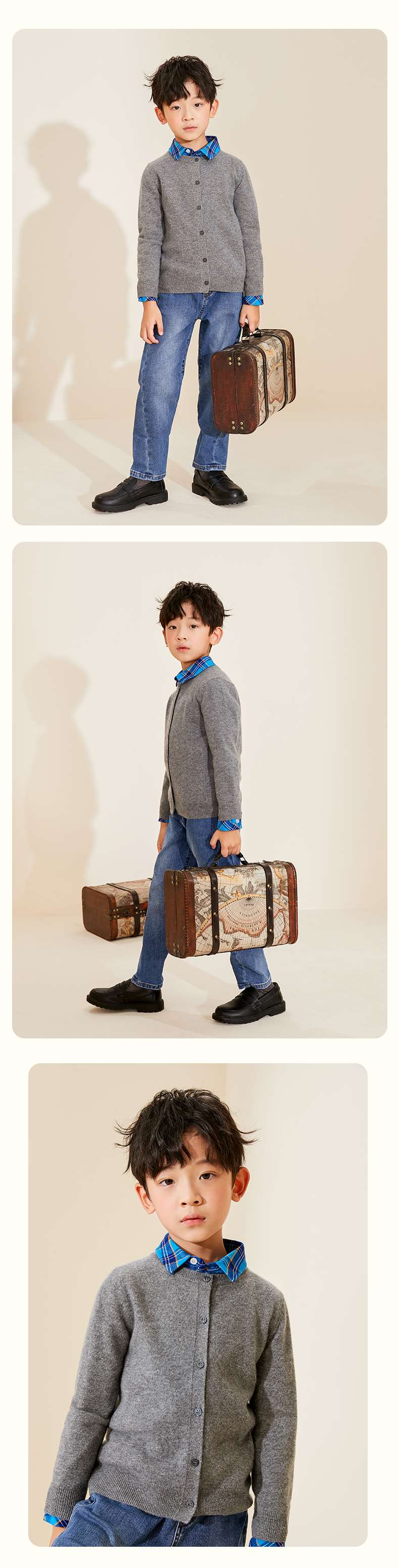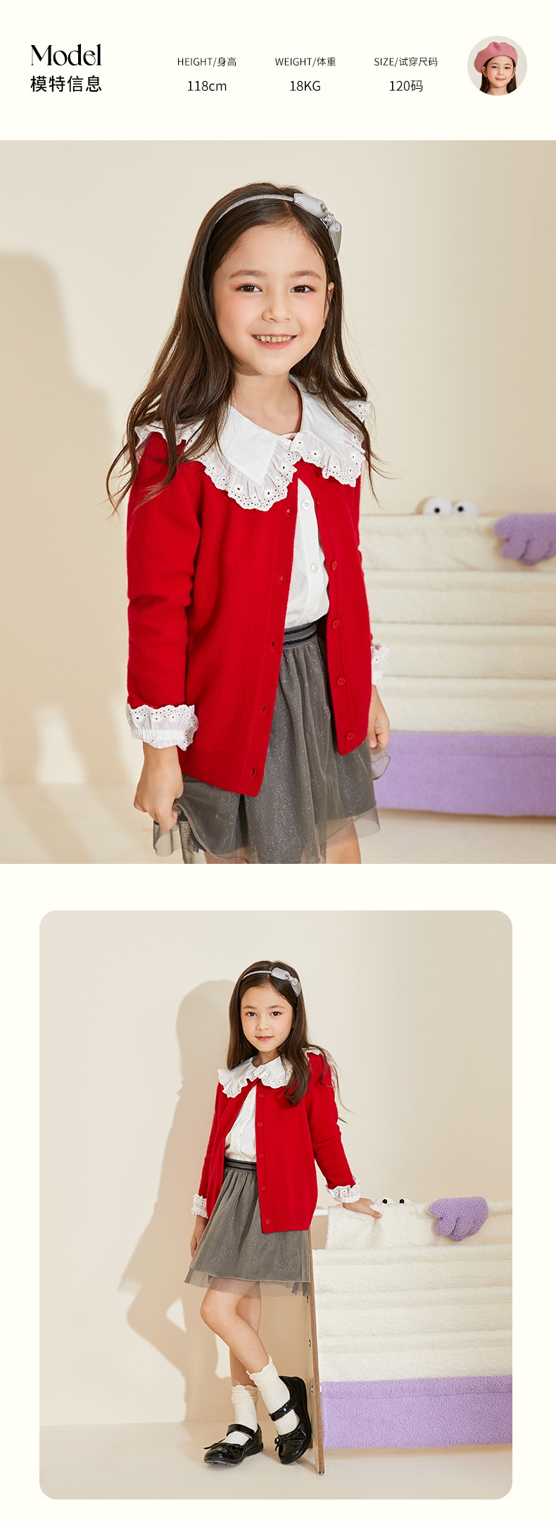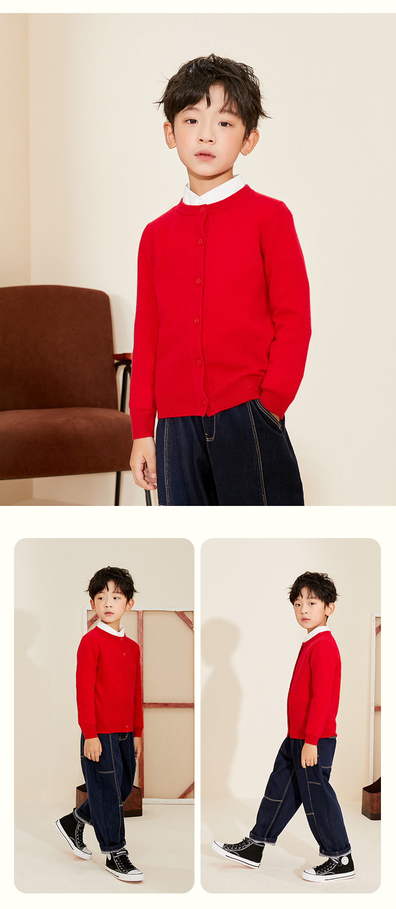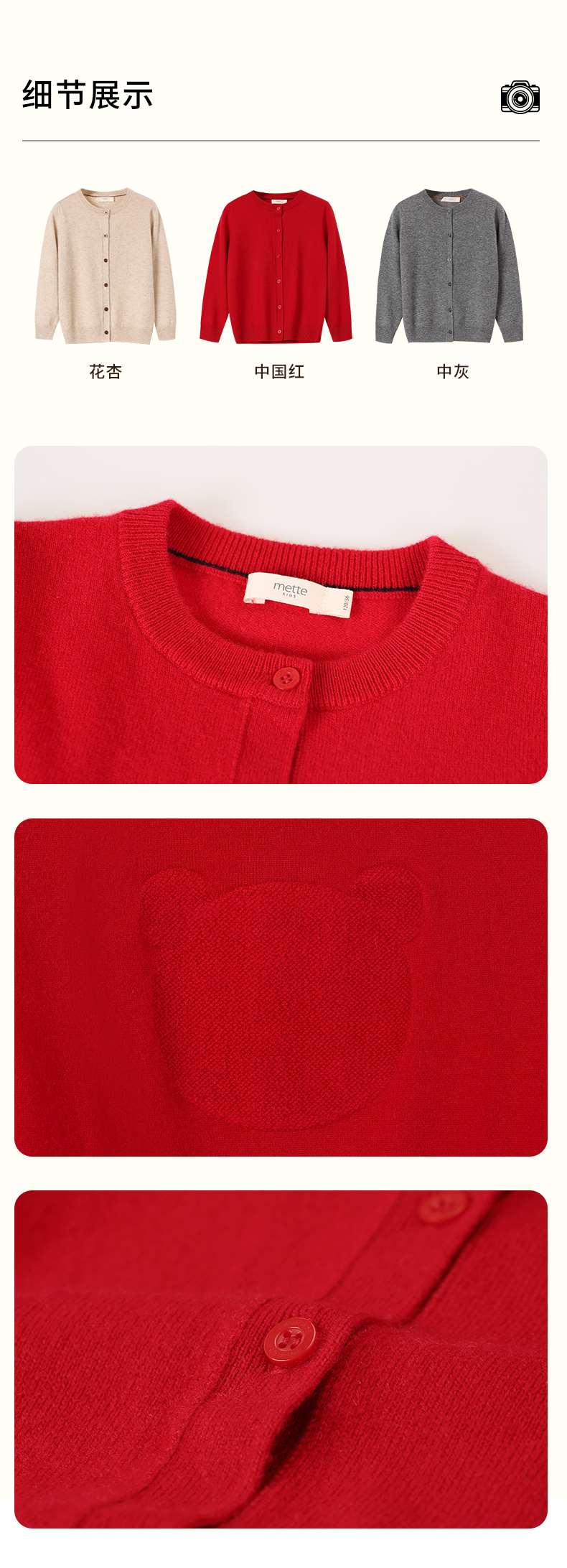 mettekids儿童羊绒衫男童春秋新款针织开衫中大女童可爱卡通毛衣