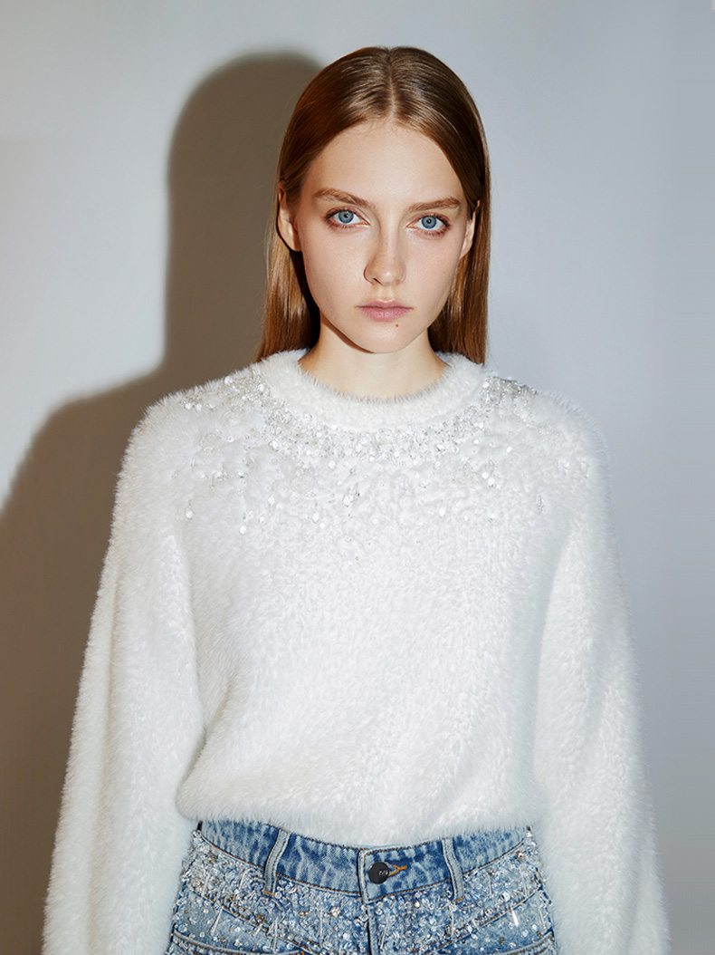 Miss Sixty2020冬季新款圣诞钉珠毛衣短款毛织衫女604RJ0430000