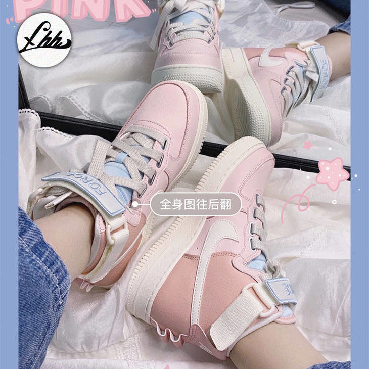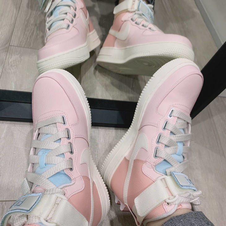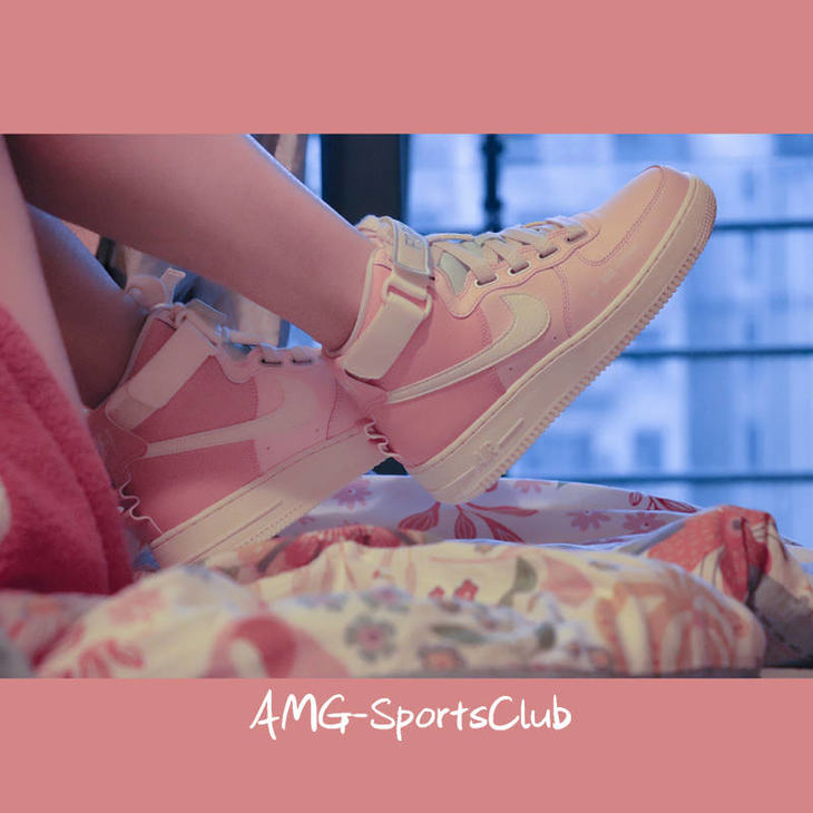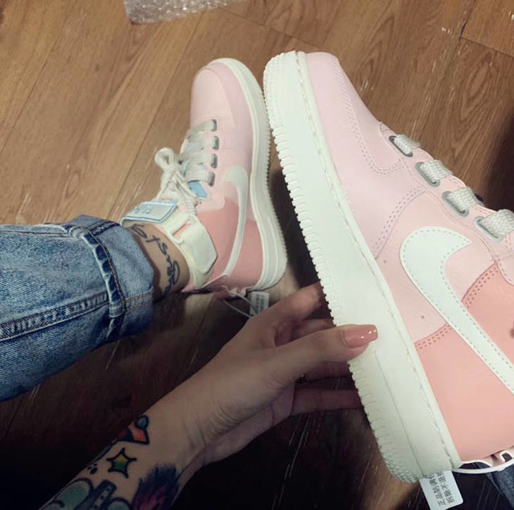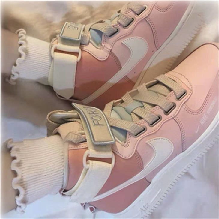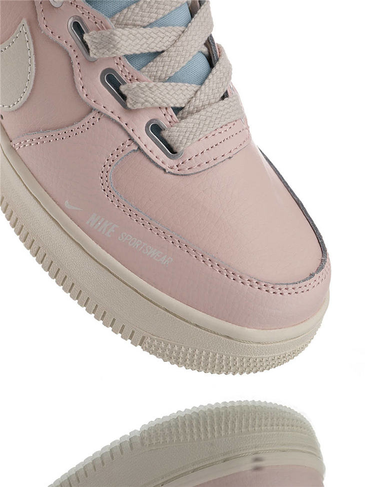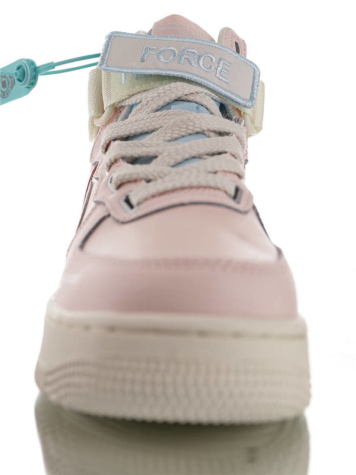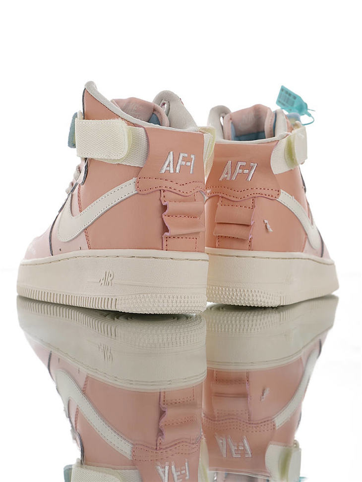 耐克Nike Wmns Air Force 1 High UT 替换LOGO魔术贴 原模具开发打造 采用移膜革荔枝皮材质 内置全掌air sole气垫 皮革樱花粉米白拼接