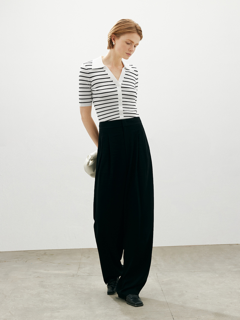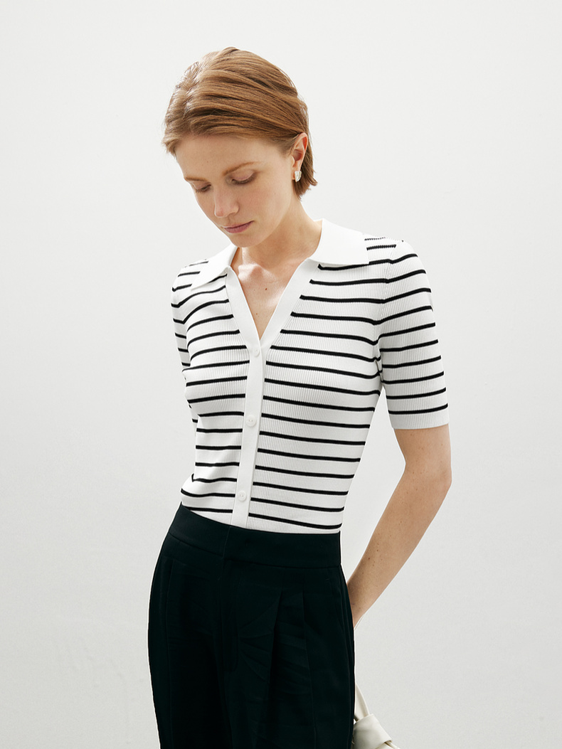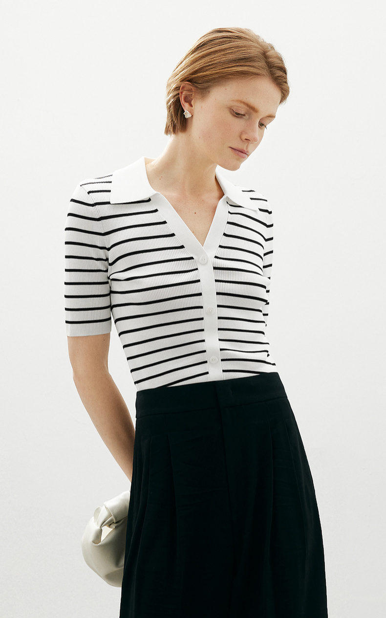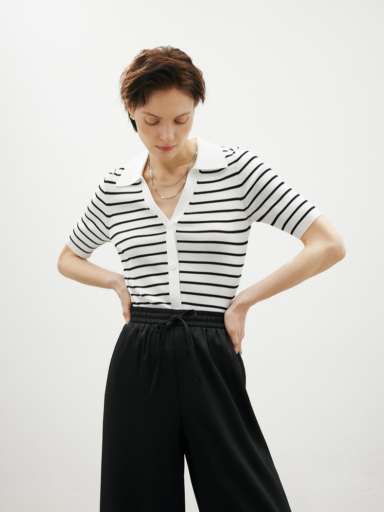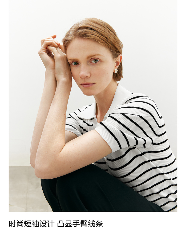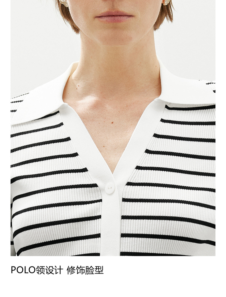 【商场同款】麦檬Polo领+V开舒适套头短毛衫5F4131481