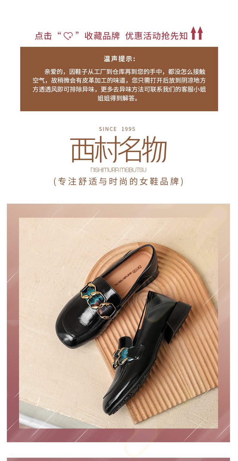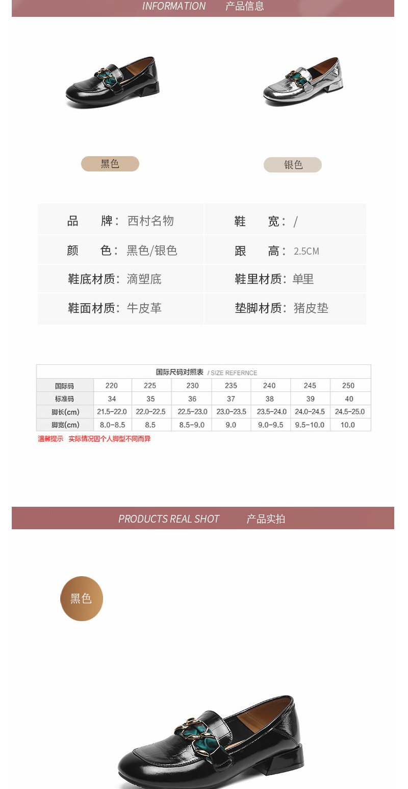 西村名物2022年春新款英伦风小皮鞋圆头低跟乐福鞋休闲一脚蹬女单鞋T22AM19401