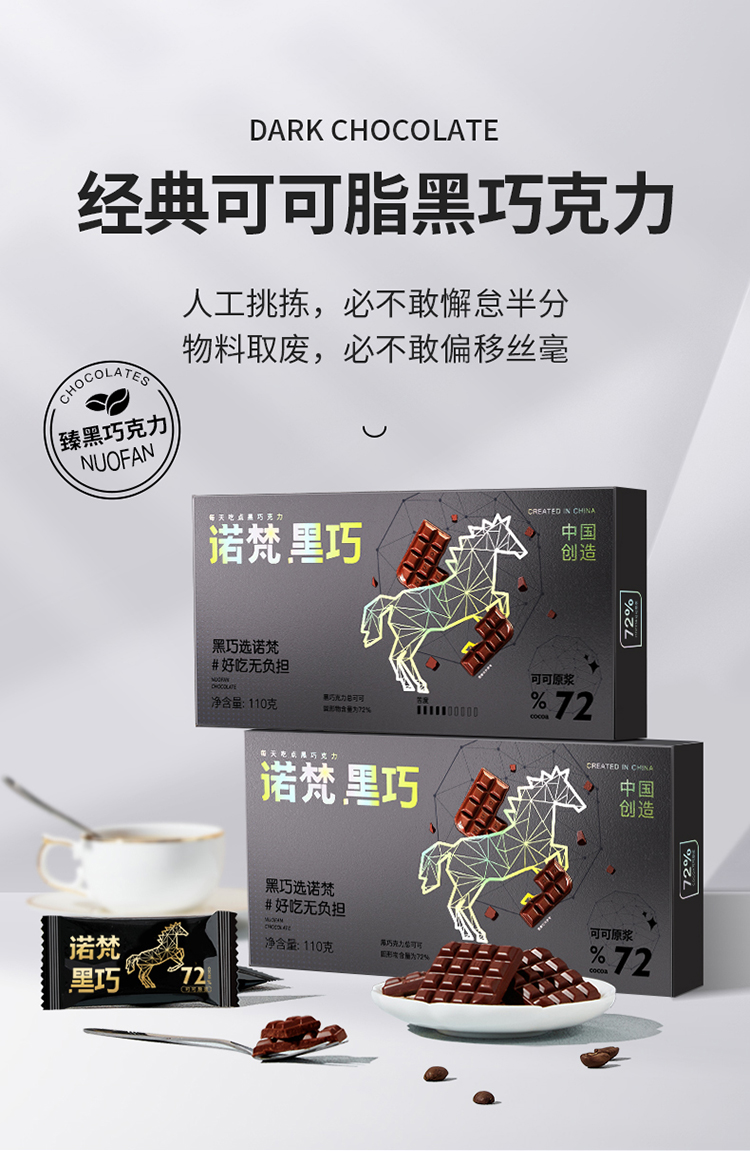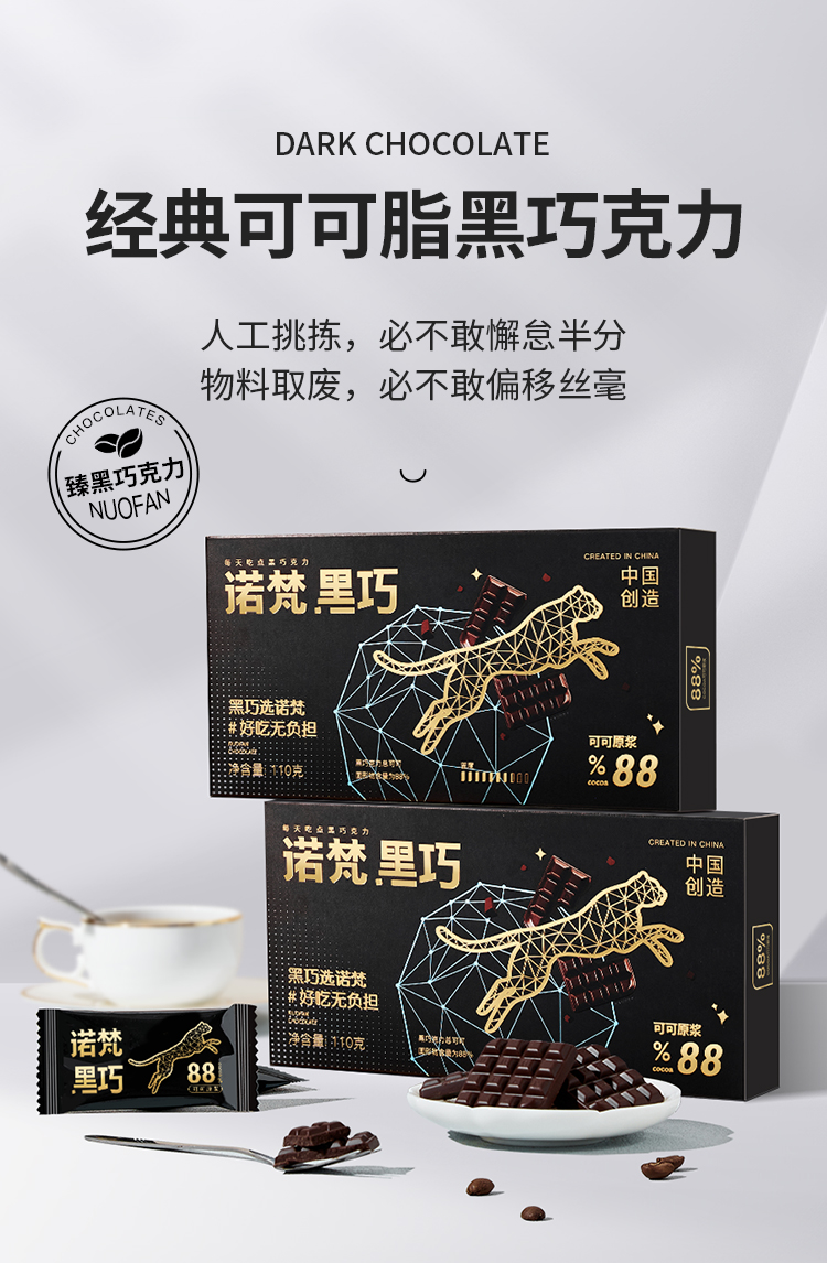 诺梵黑巧克力每日纯黑巧克力可可脂休闲零食