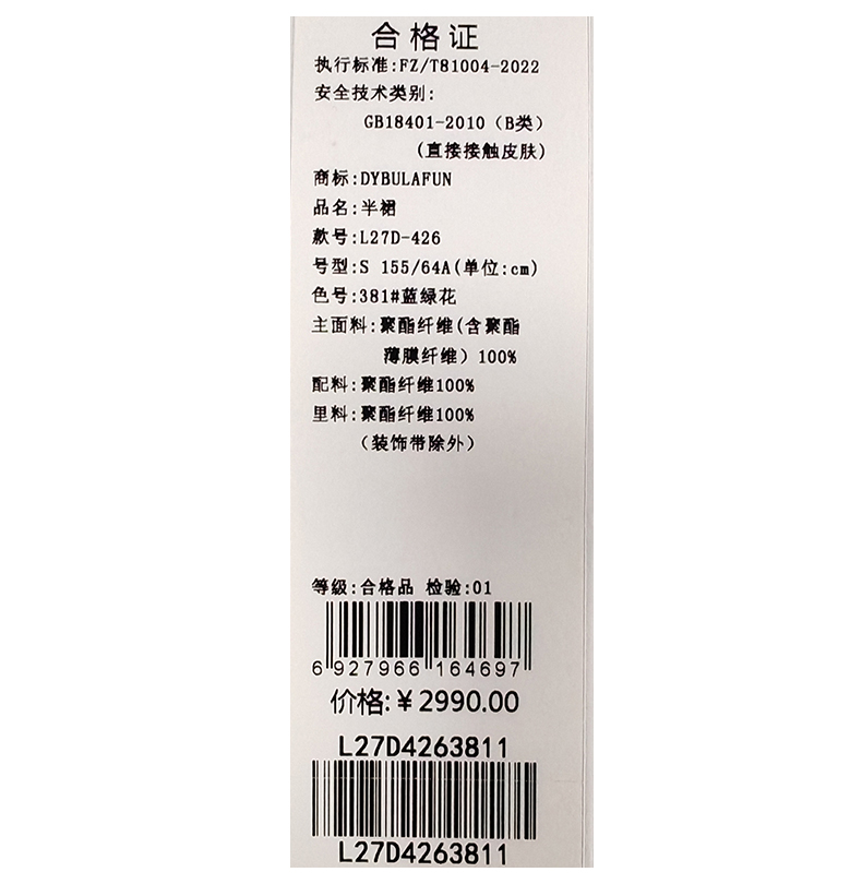 戴布拉芬半身裙L27D426