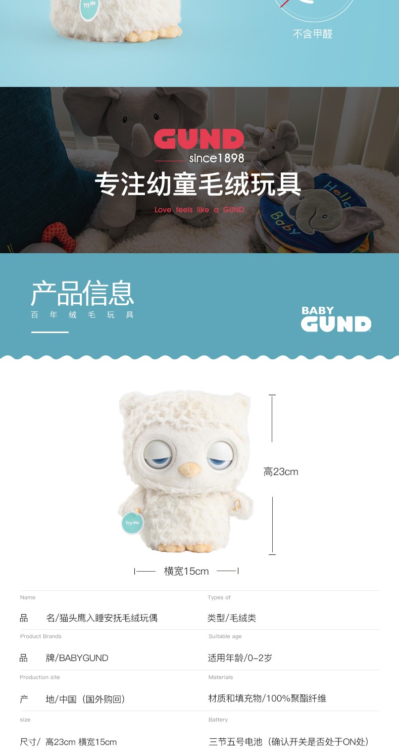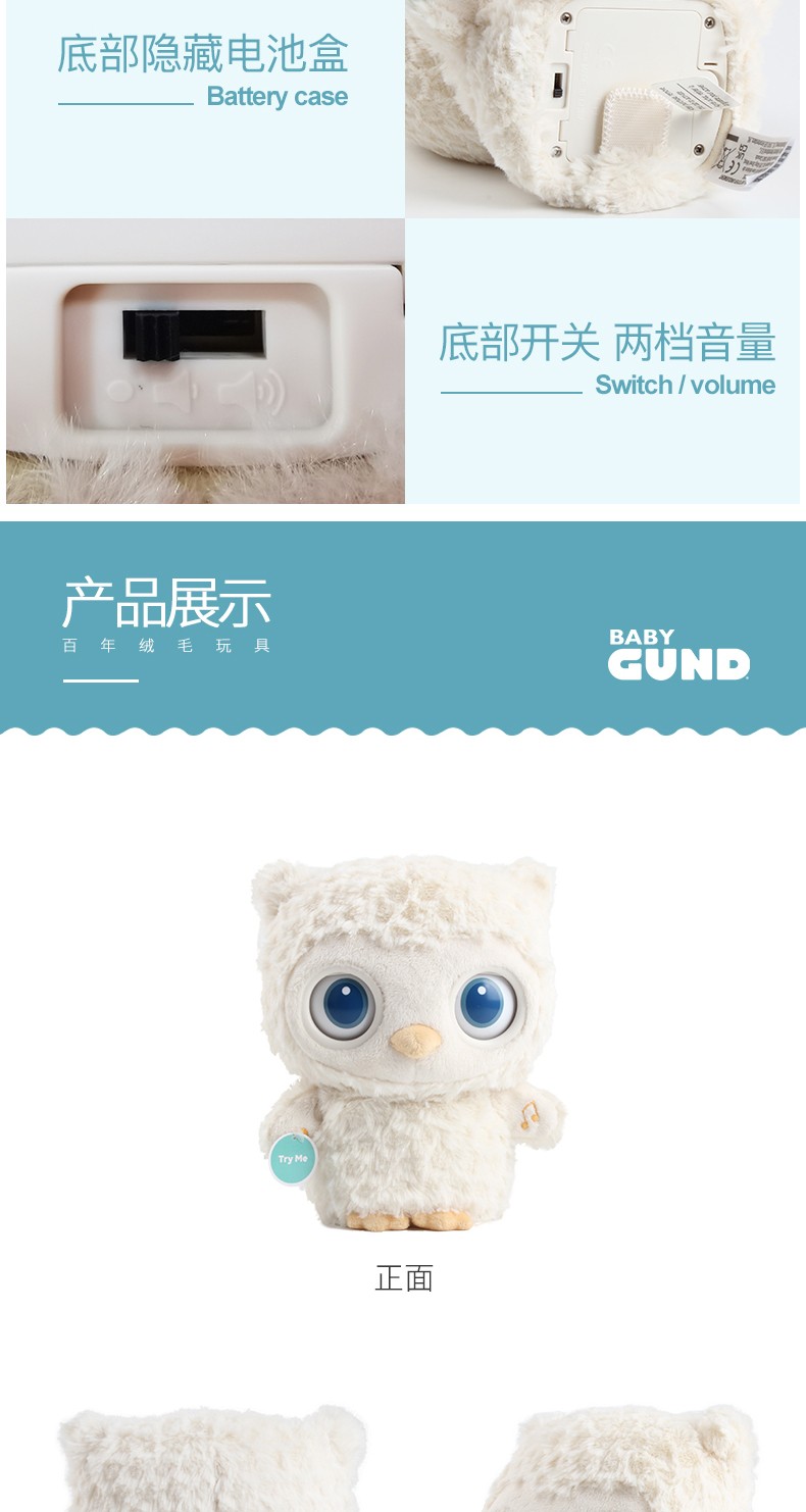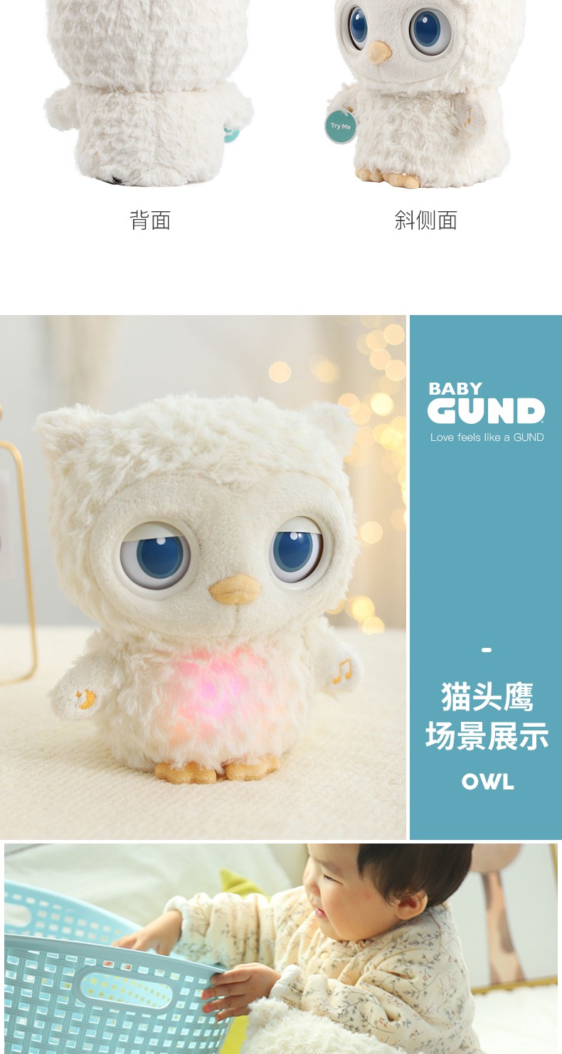 美国Baby gund 猫头鹰婴儿入睡安抚毛绒玩偶玩具 宝宝白噪音哄睡玩具
