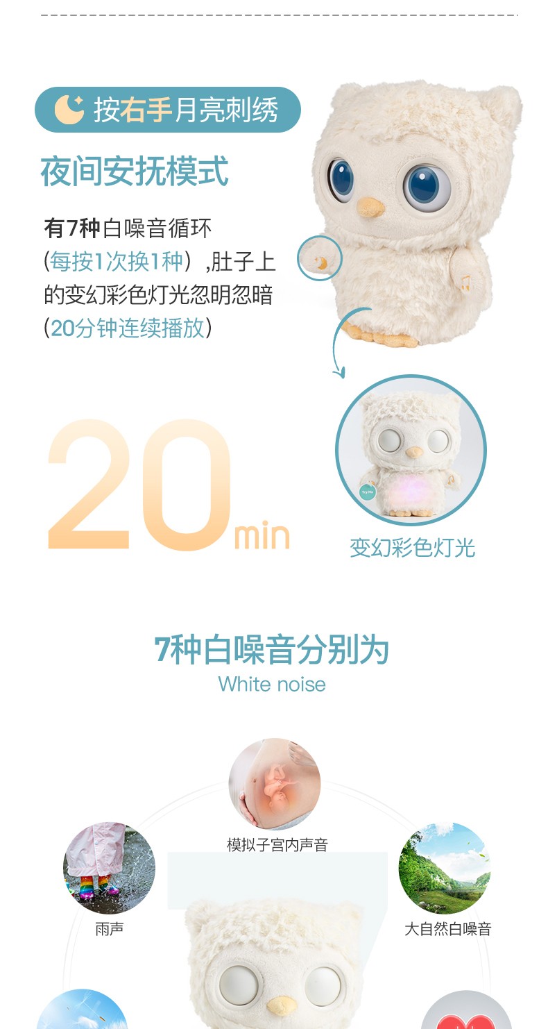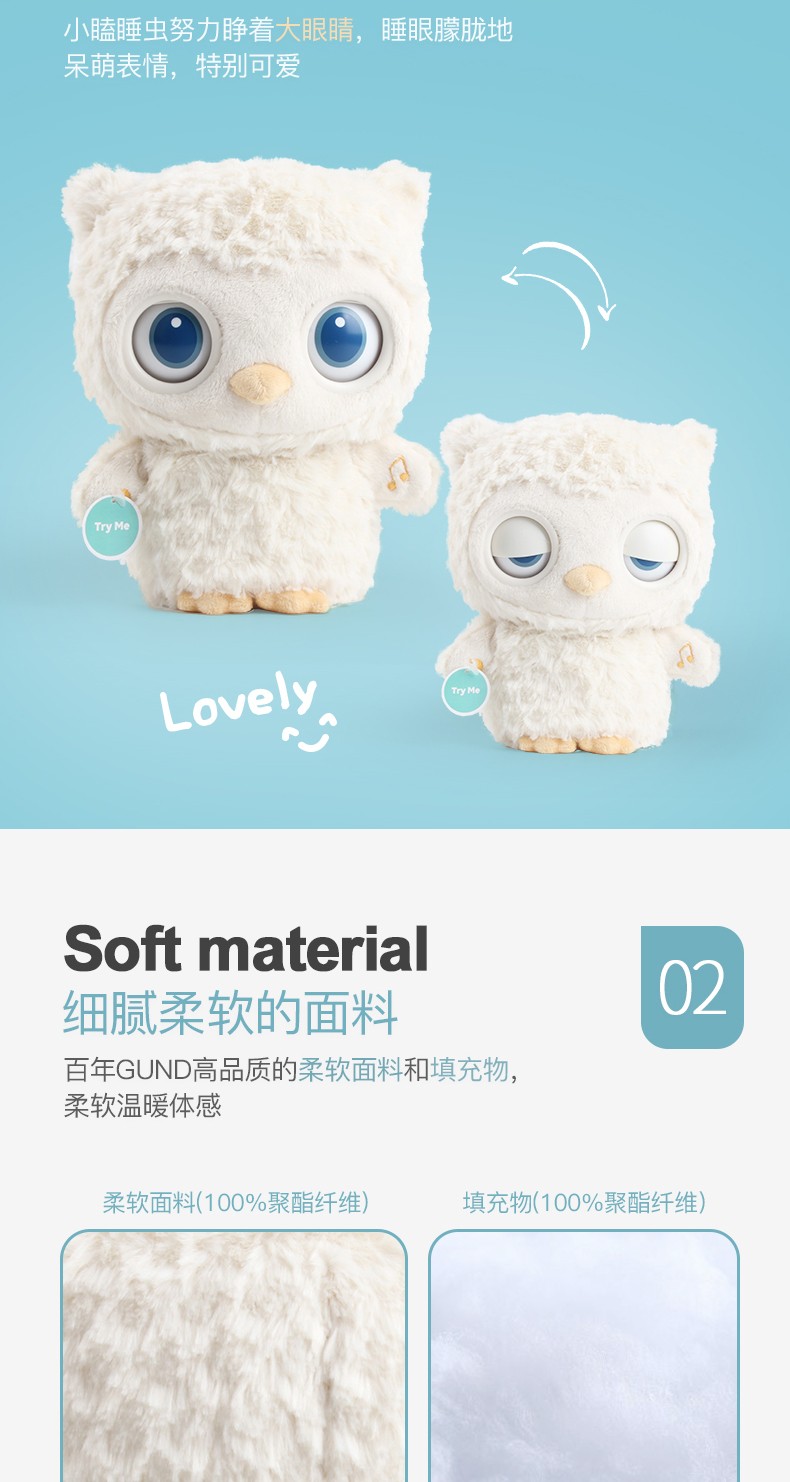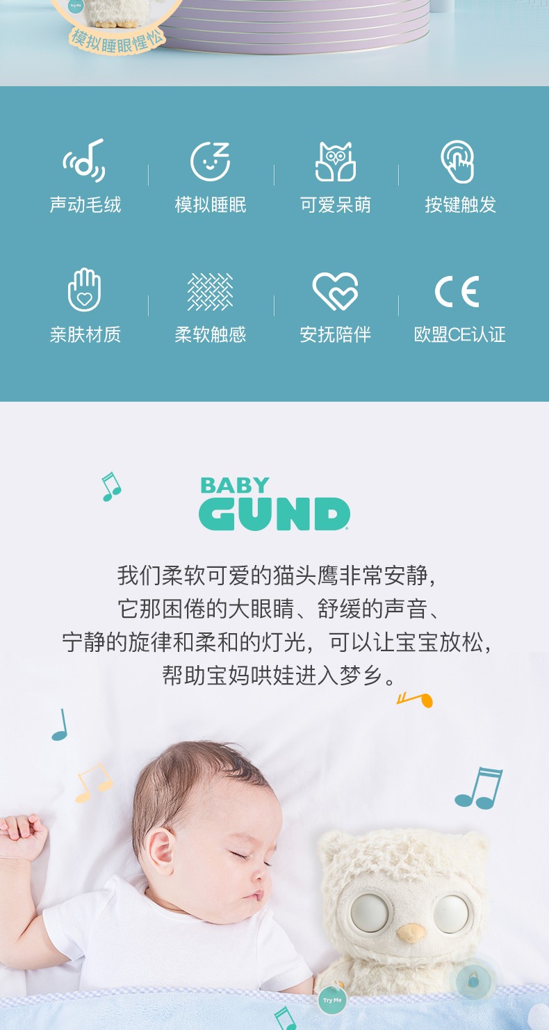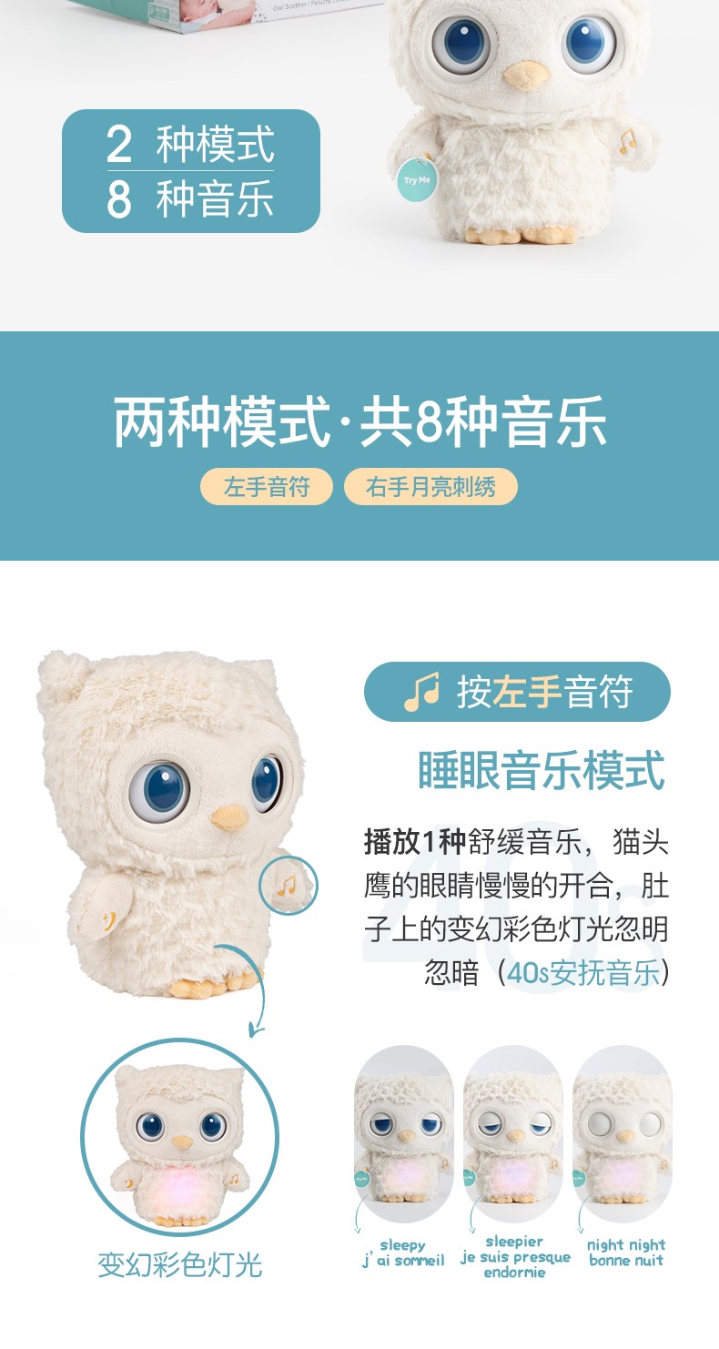 美国Baby gund 猫头鹰婴儿入睡安抚毛绒玩偶玩具 宝宝白噪音哄睡玩具