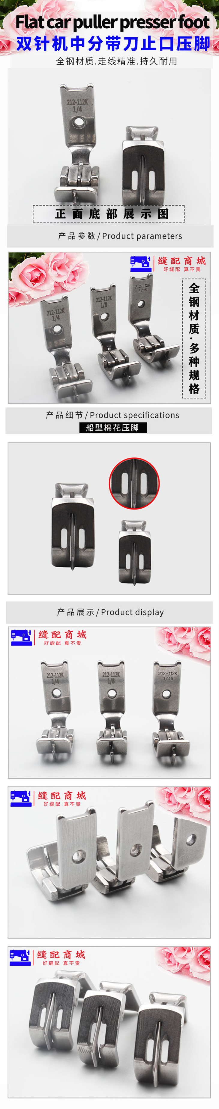 双针车中分压脚212-112K 平双针机带刀止口压脚缝纫机配件双针机中间带刀压脚
