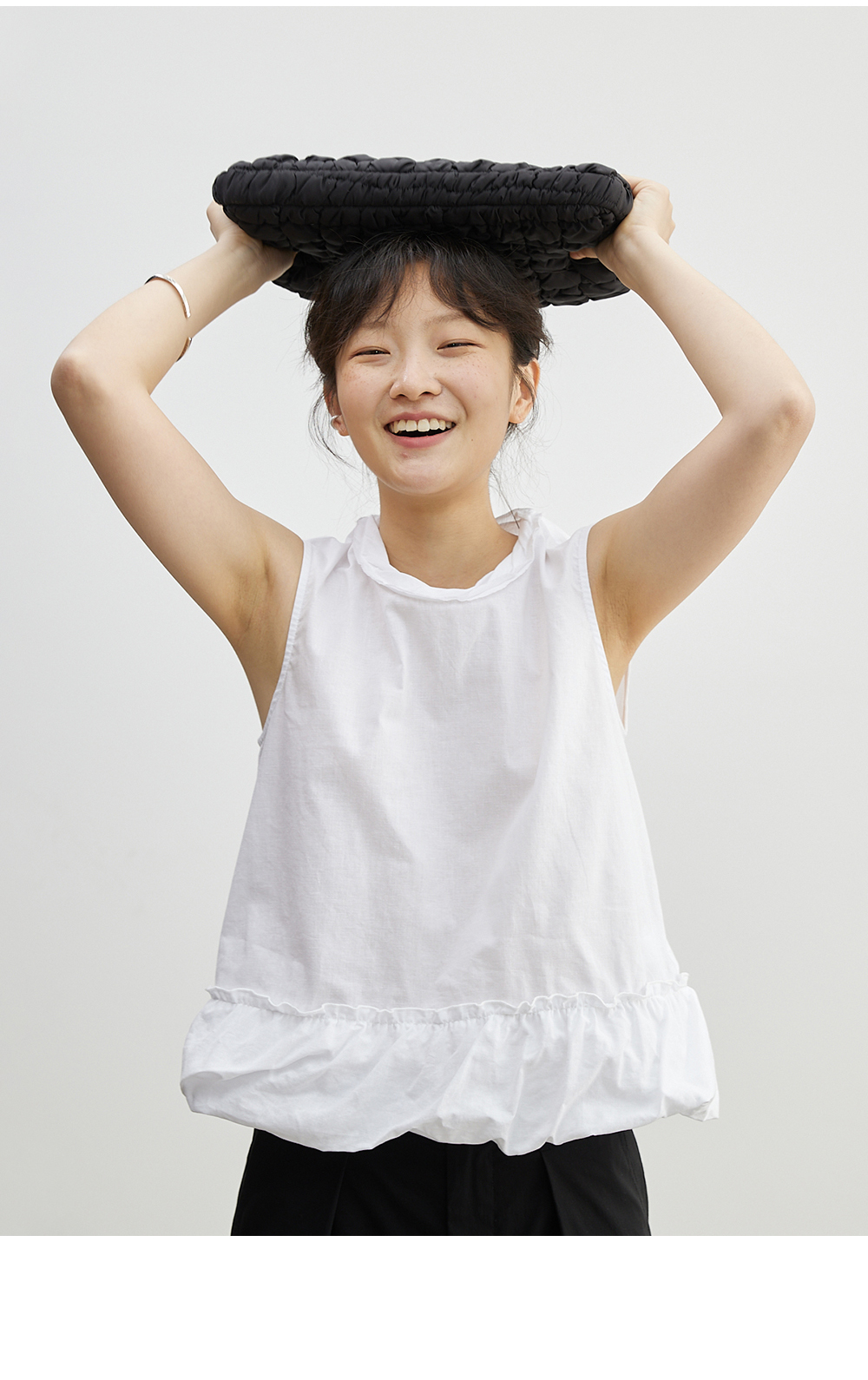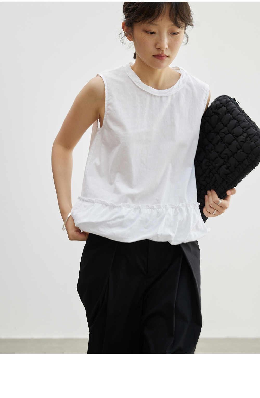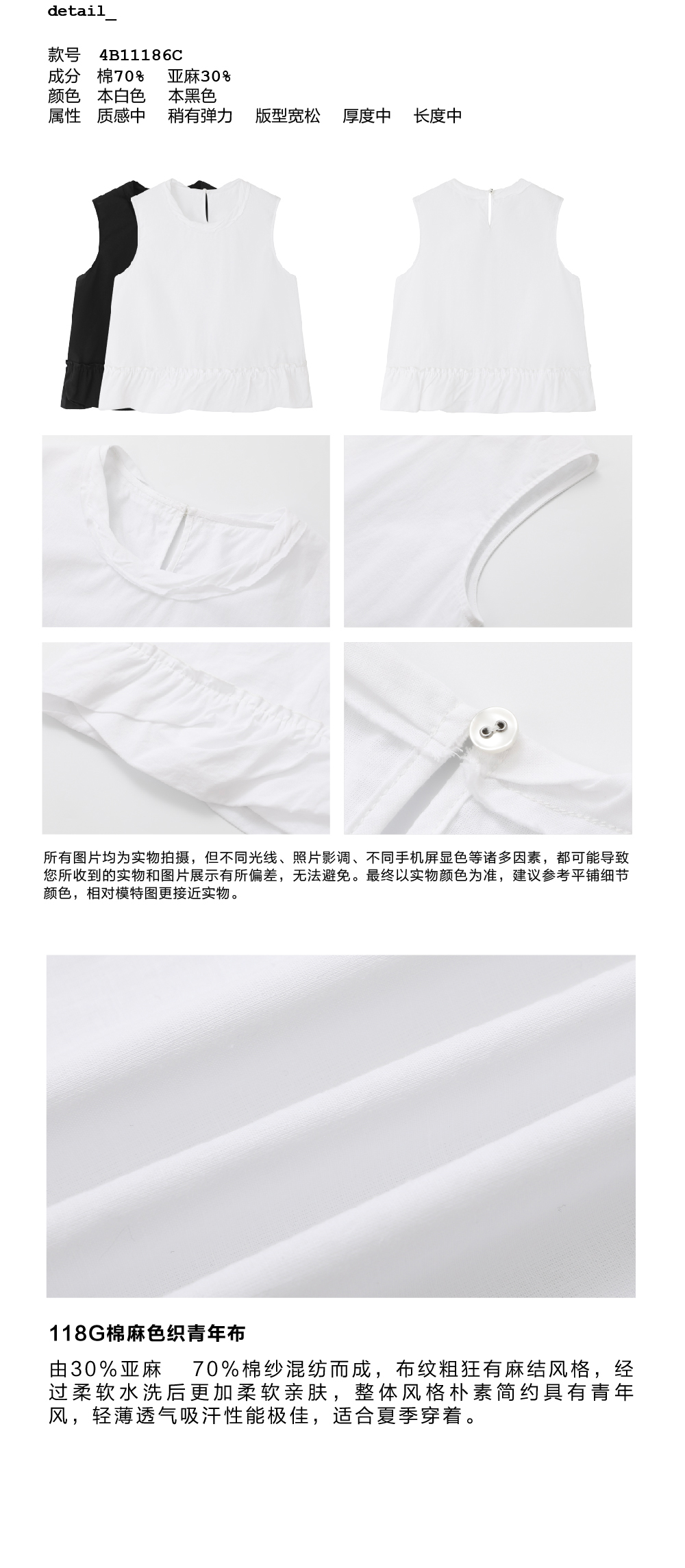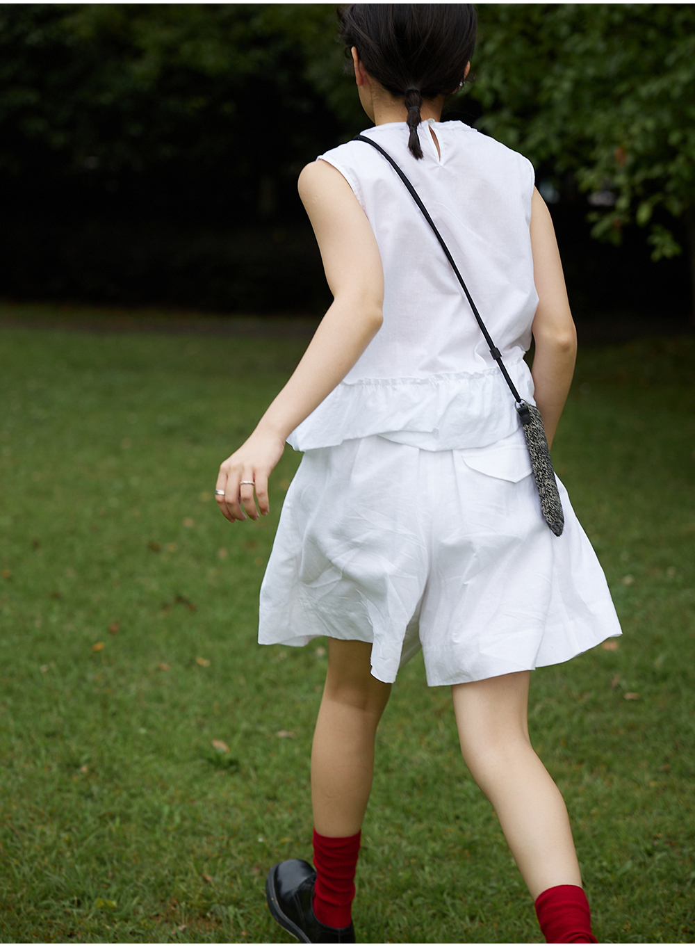 步履不停/4B11186C/夏季圆领白色棉麻花苞无袖砍袖上衣