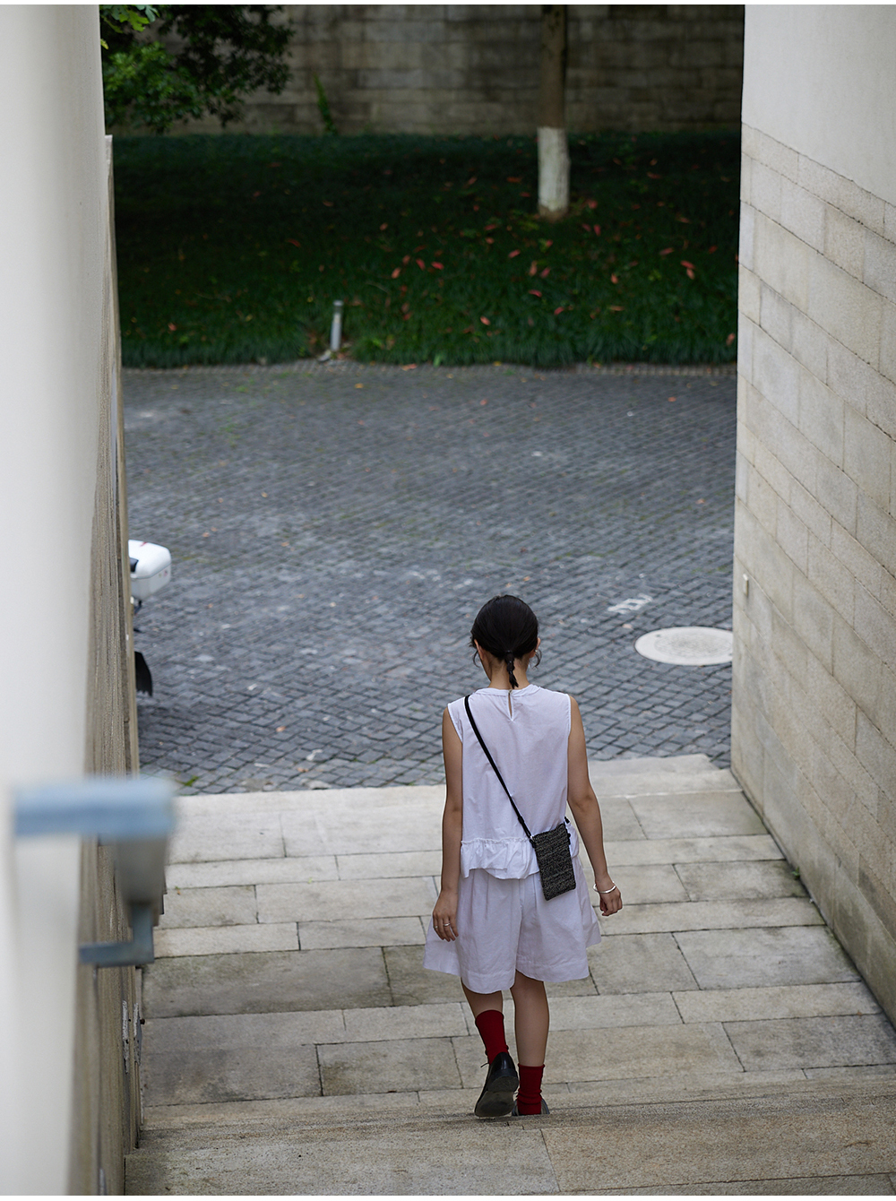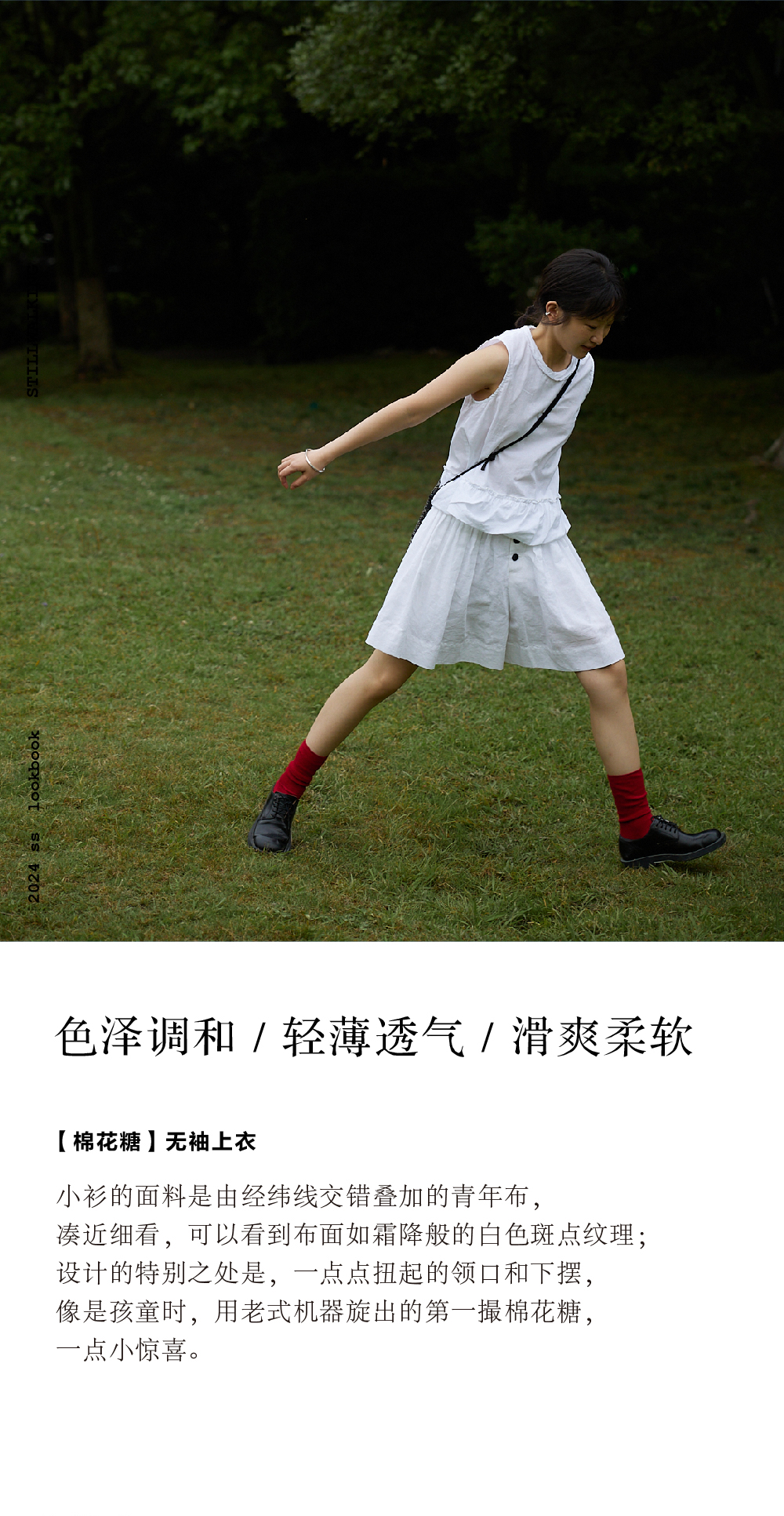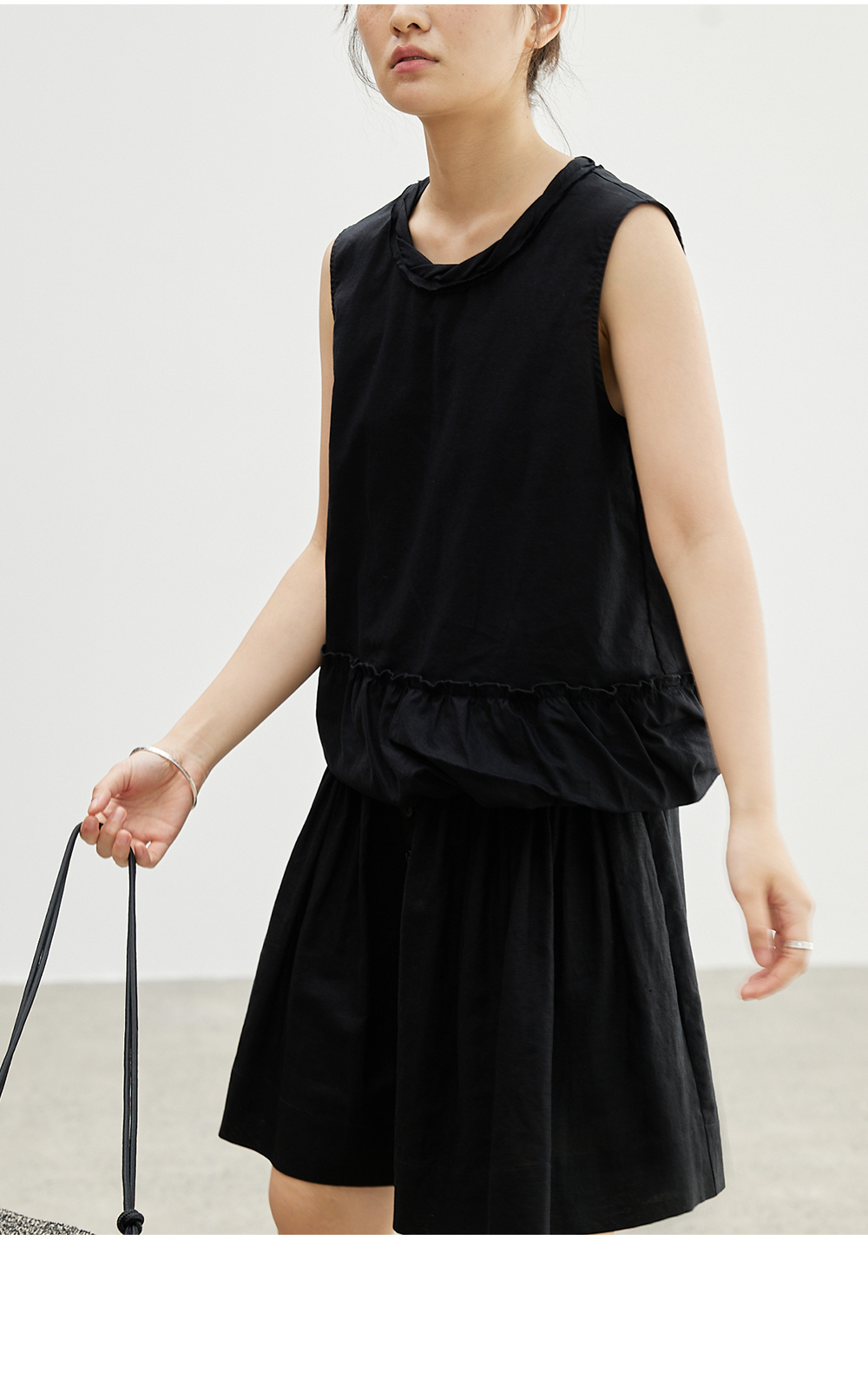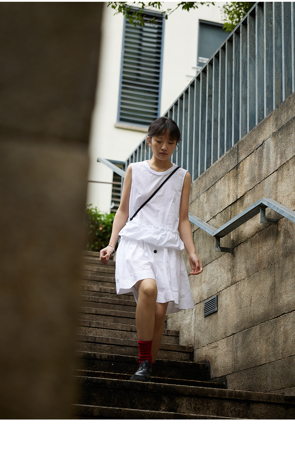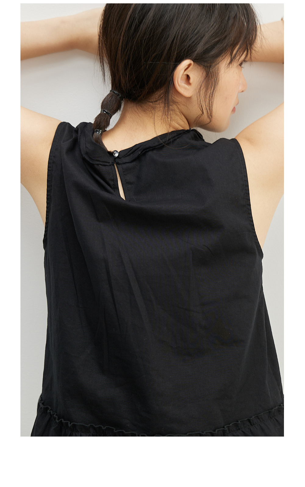步履不停/4B11186C/夏季圆领白色棉麻花苞无袖砍袖上衣