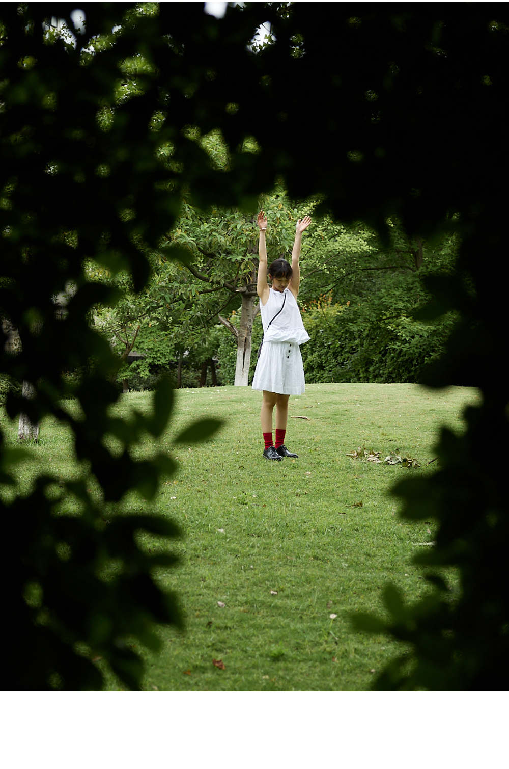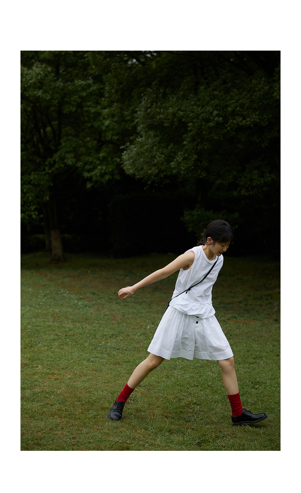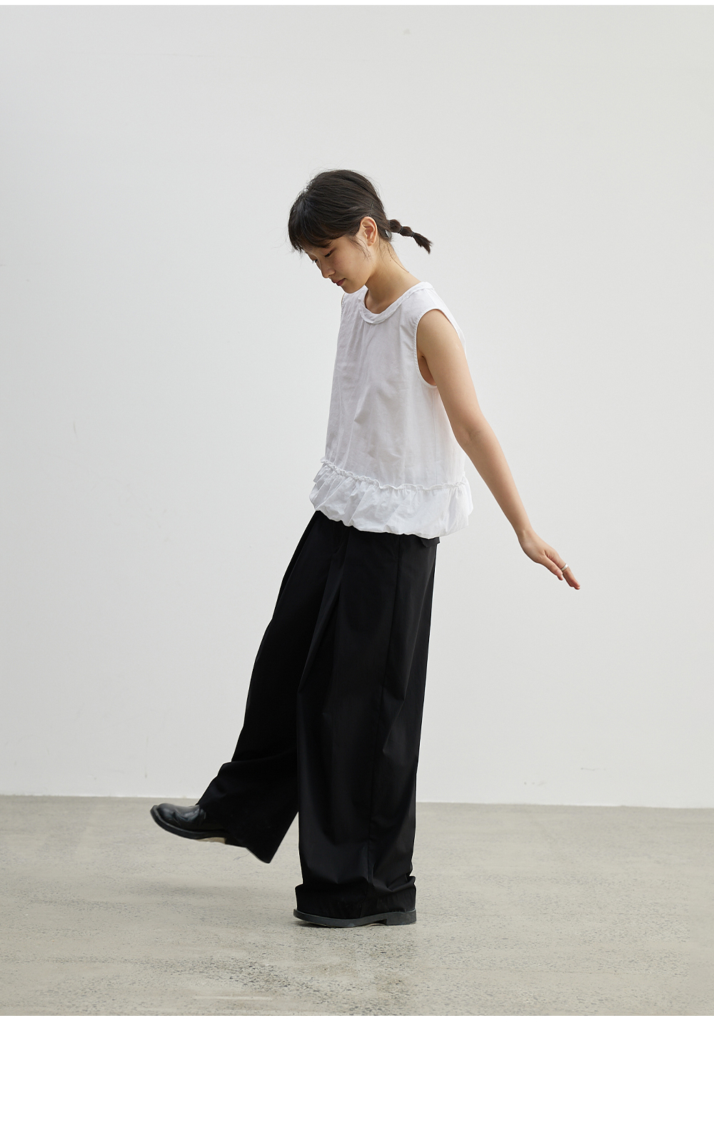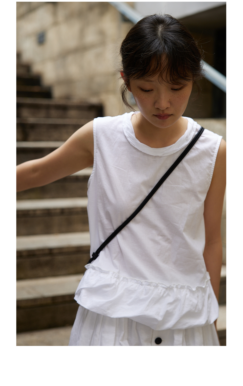 步履不停/4B11186C/夏季圆领白色棉麻花苞无袖砍袖上衣