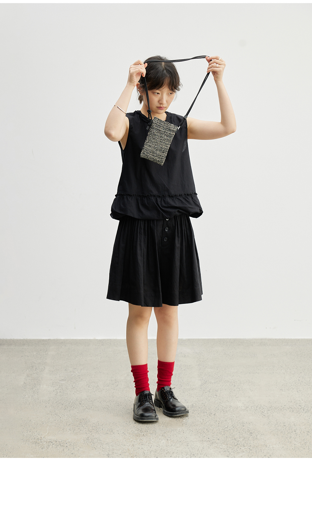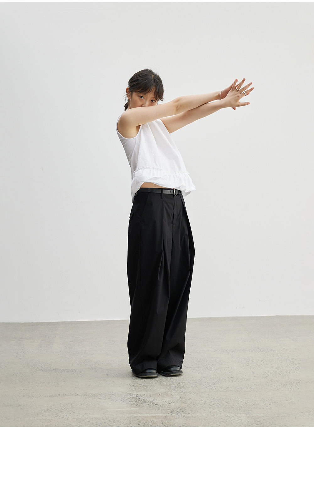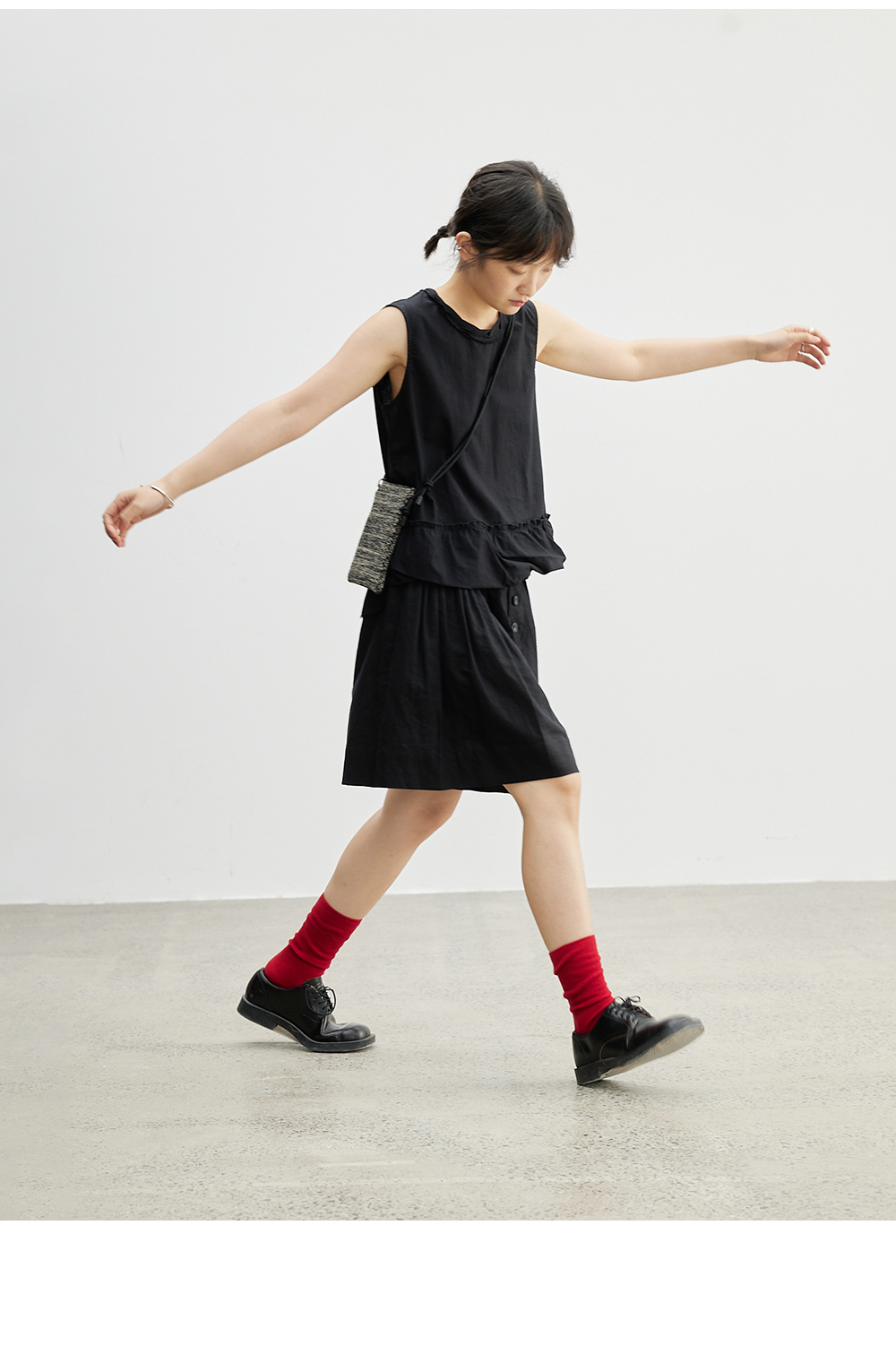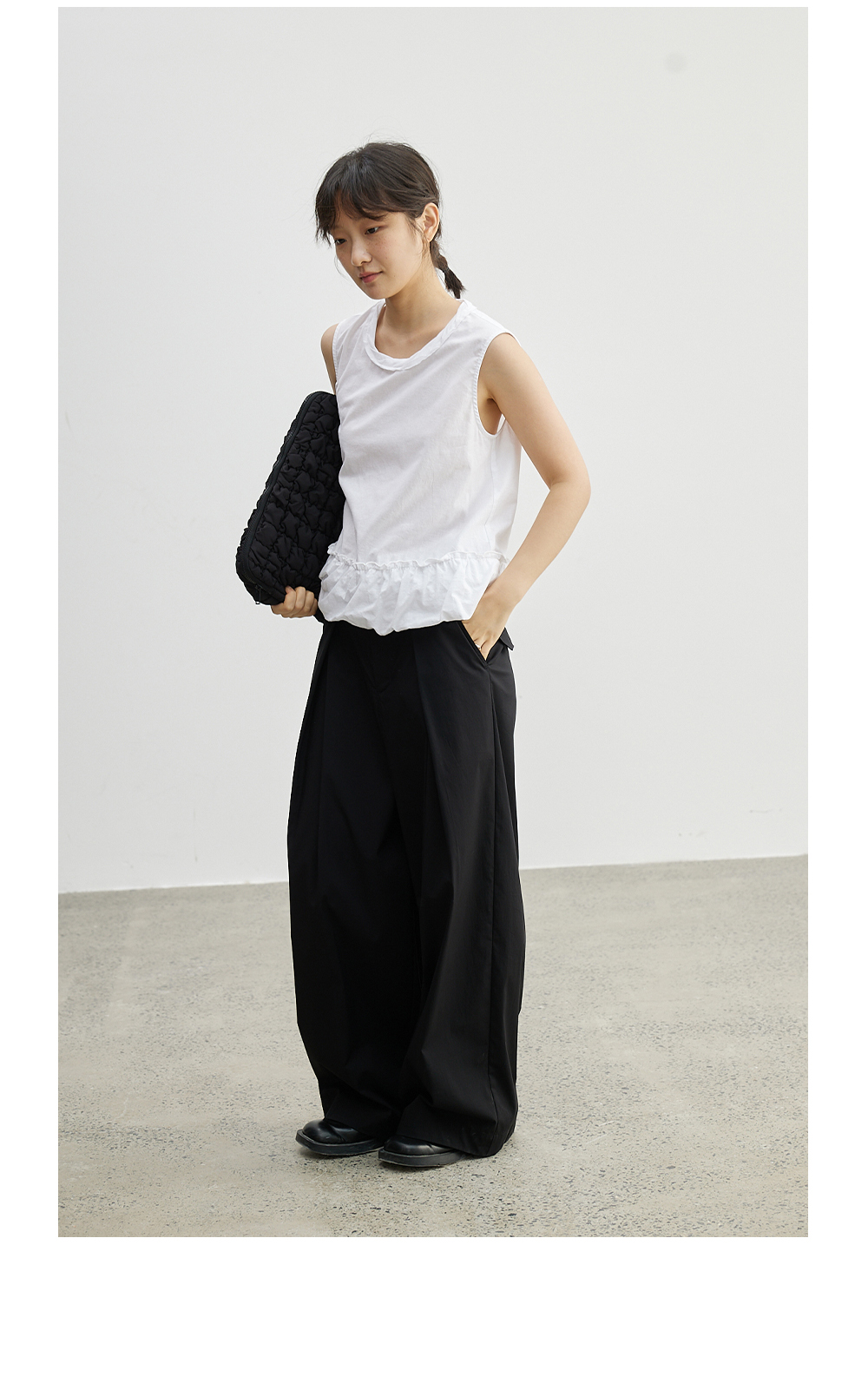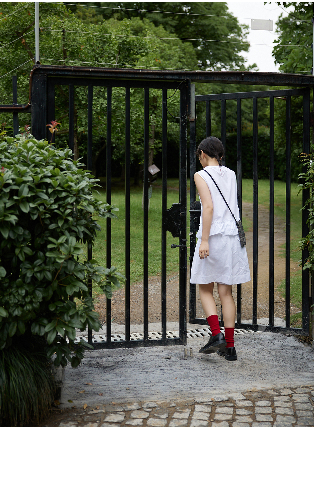 步履不停/4B11186C/夏季圆领白色棉麻花苞无袖砍袖上衣
