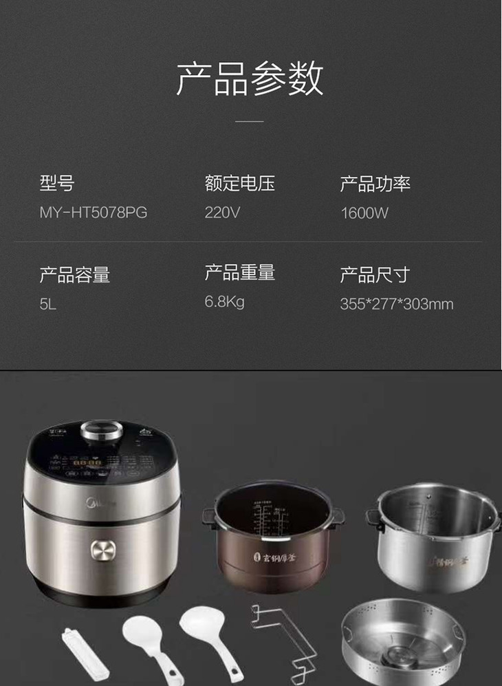 南5美的(Midea)MY-HT5078PG去油祛脂脱脂电压力锅