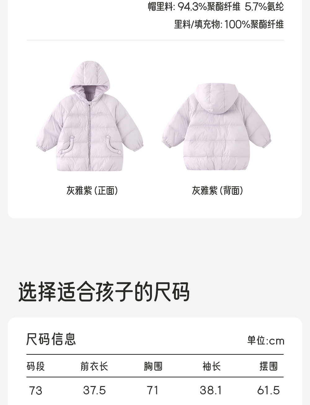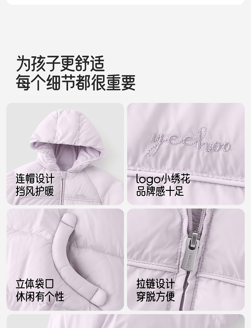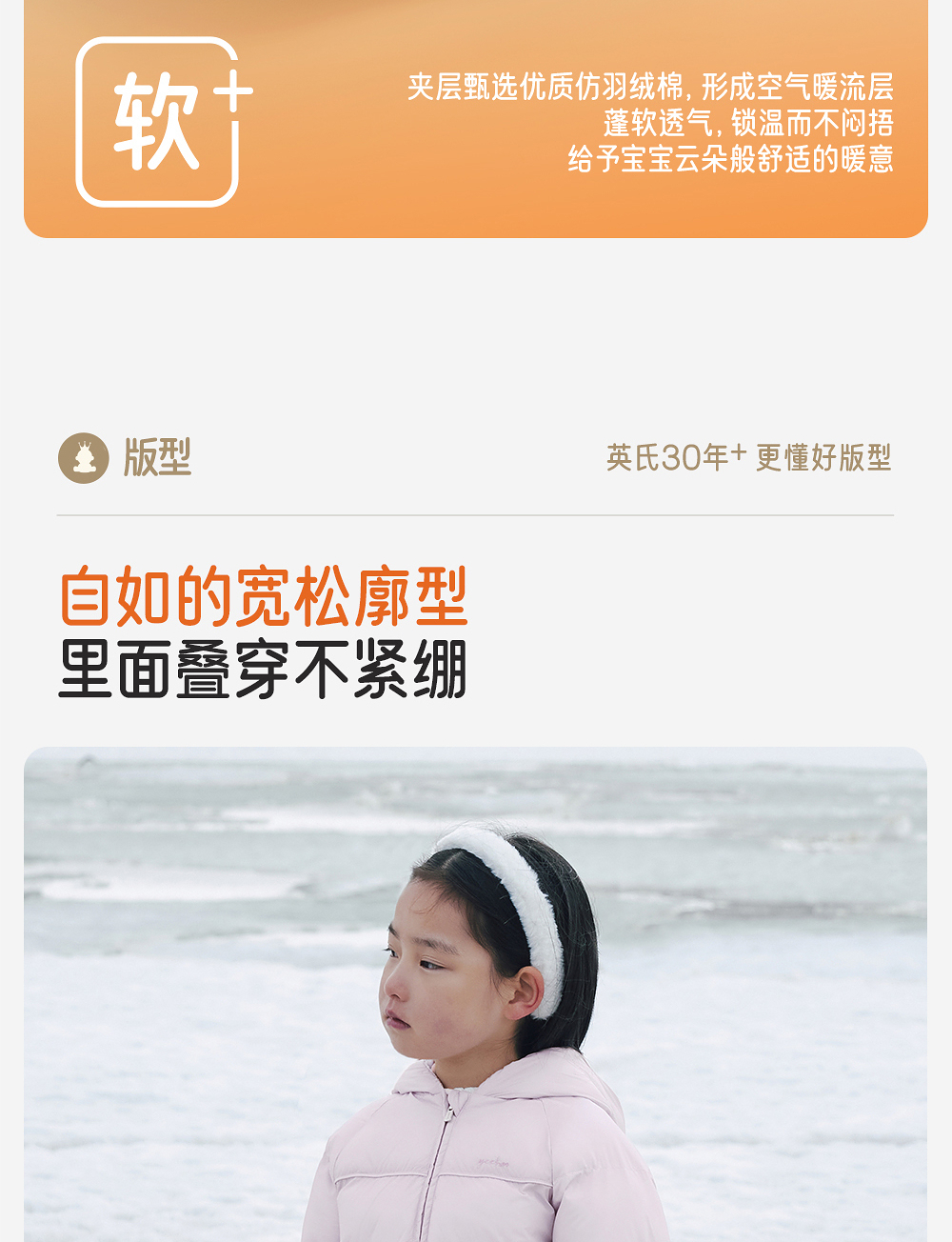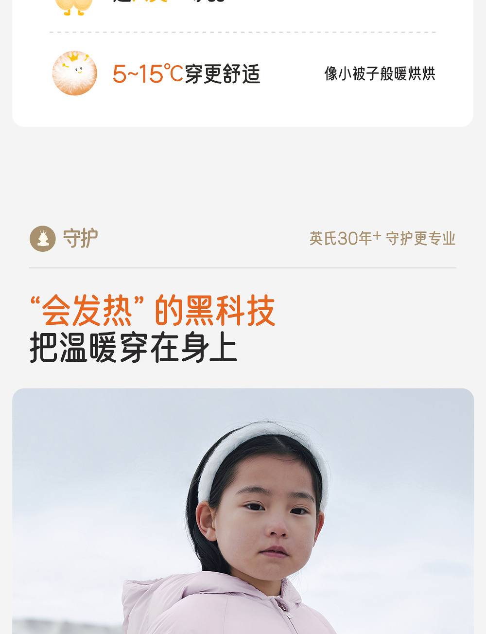 英氏儿童连帽外套远红外保暖冬季女童户外新款棉服YRWQJ4R110A