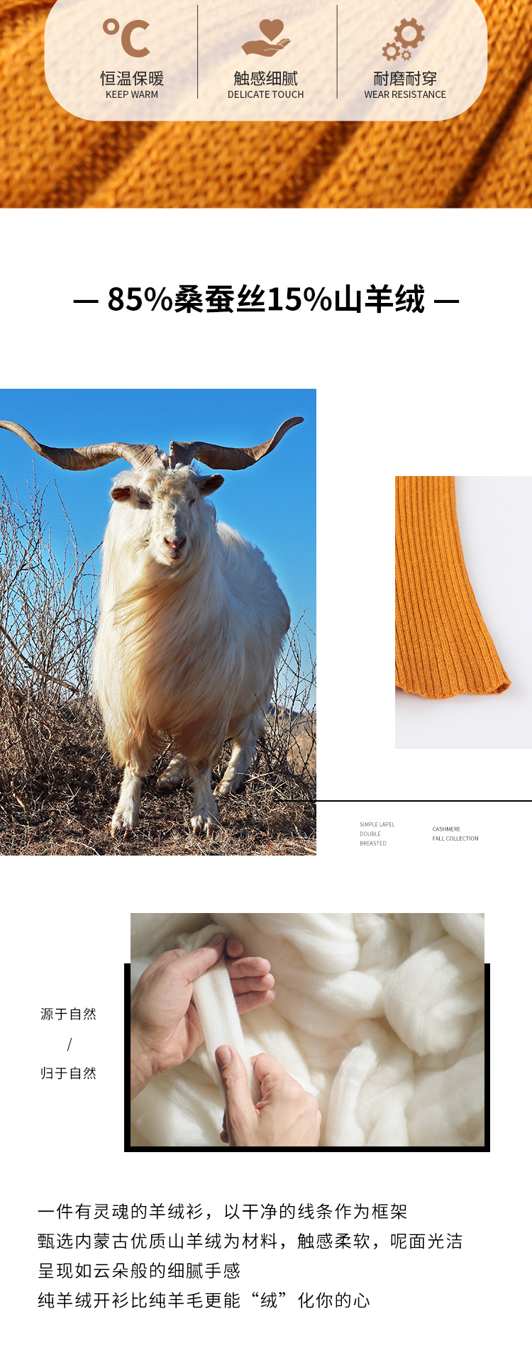 东黎羊绒是赤峰东荣集团自主品牌,自有牧场/羊绒制品全产业链优势,实现了羊绒从“牧场”到“商场”的华丽转变。