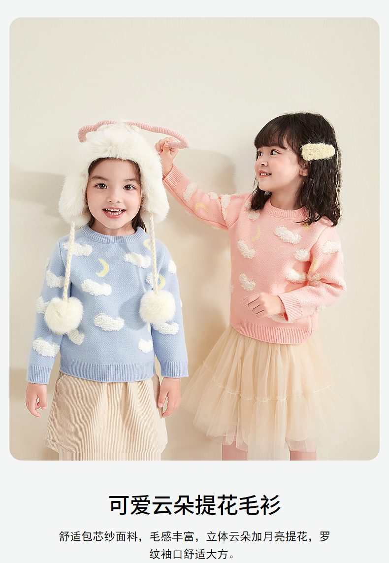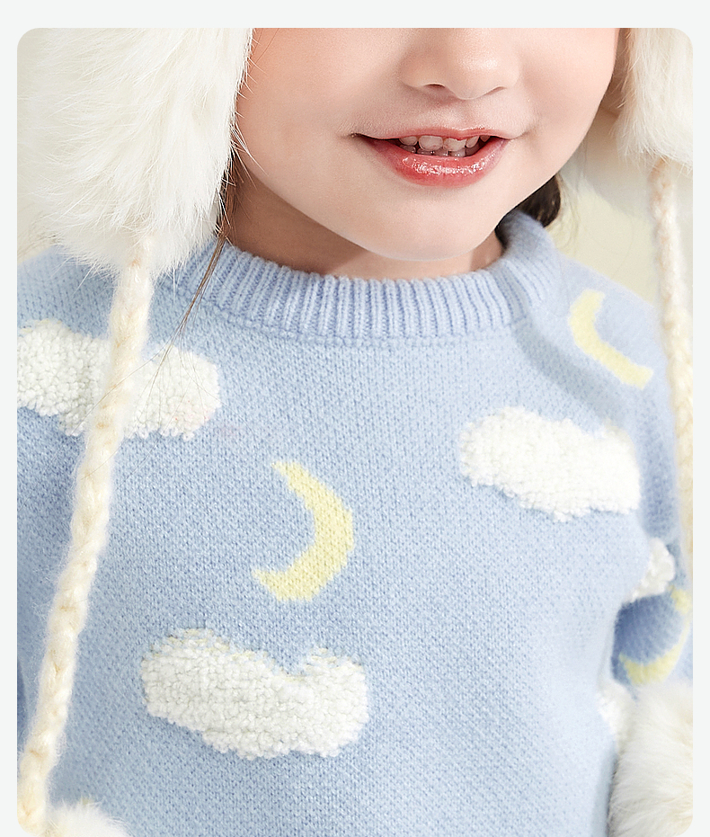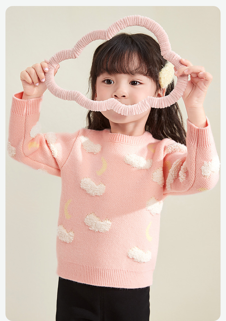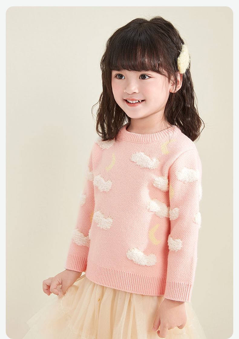 笛莎童装女童针织衫2023冬季新款可爱云朵提花毛衫