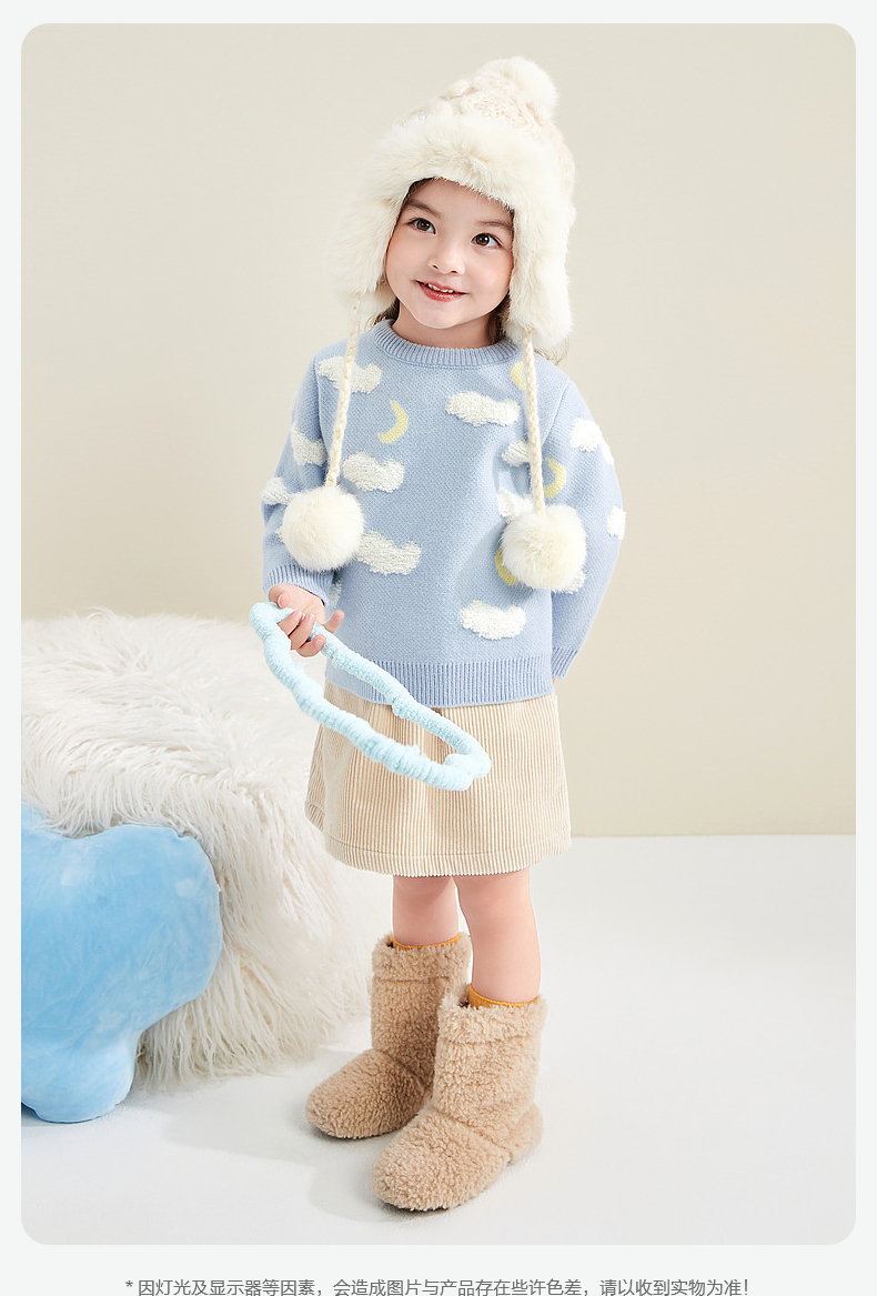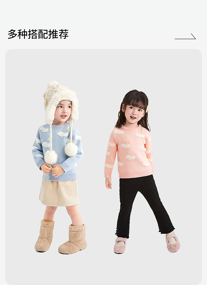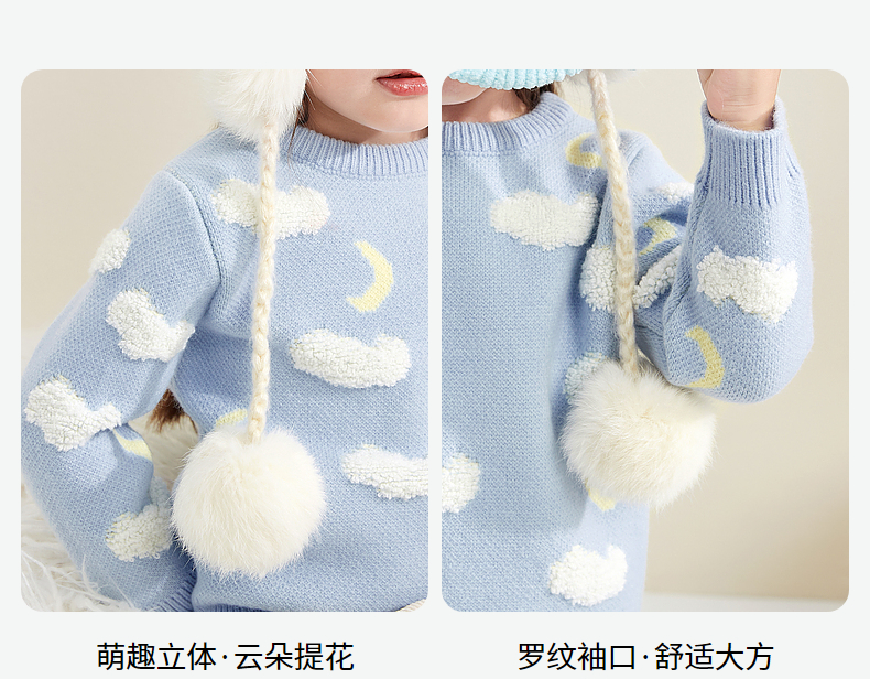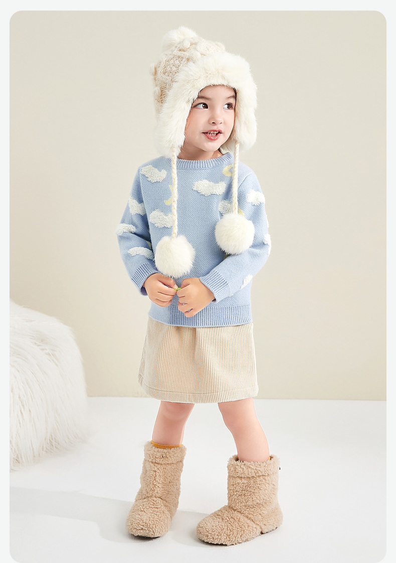 笛莎童装女童针织衫2023冬季新款可爱云朵提花毛衫