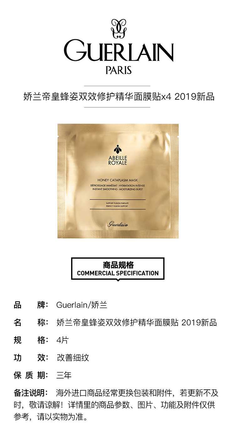 【欧洲季】Guerlain/娇兰 19新品 帝皇蜂姿双效修护精华面膜贴x4片