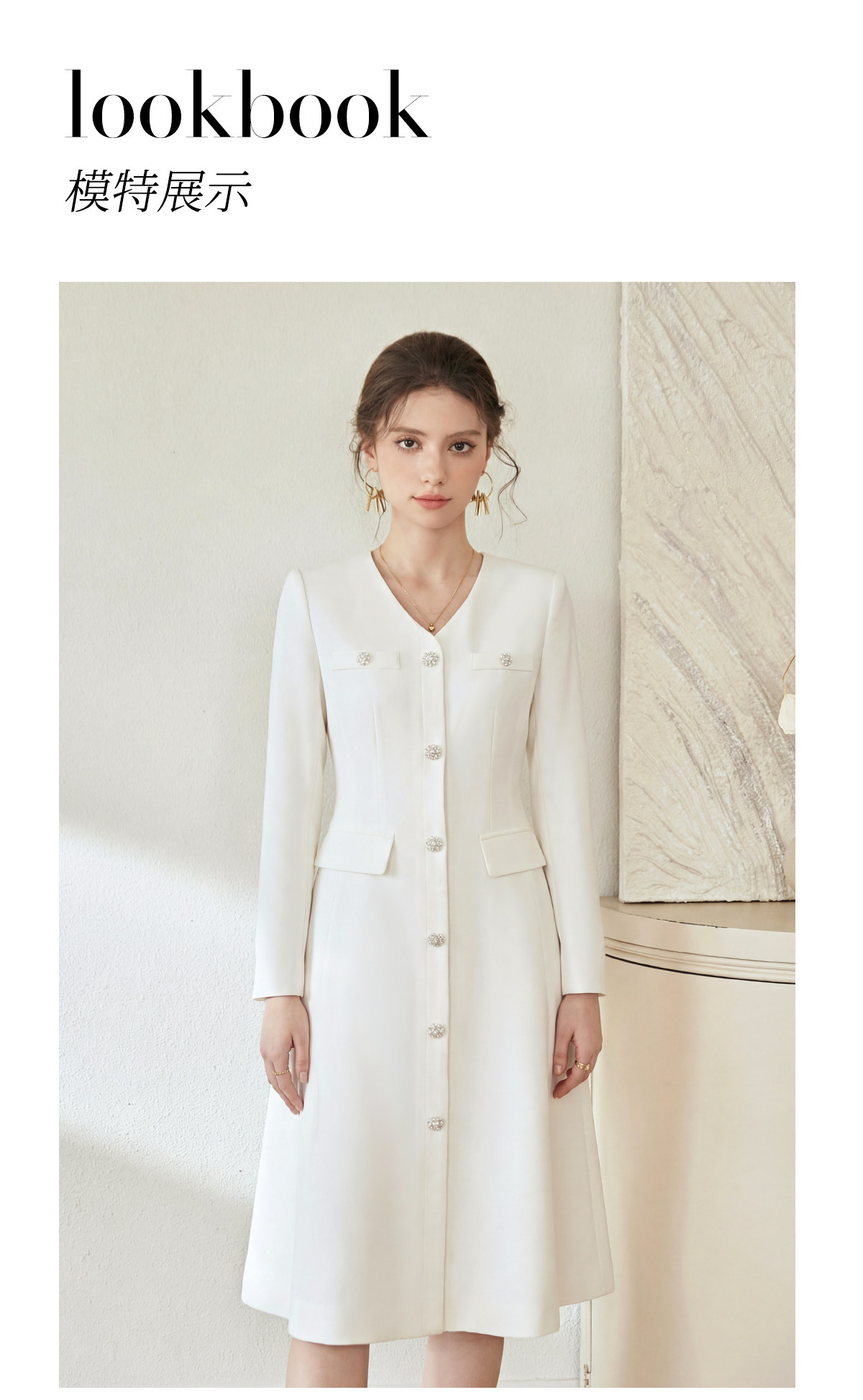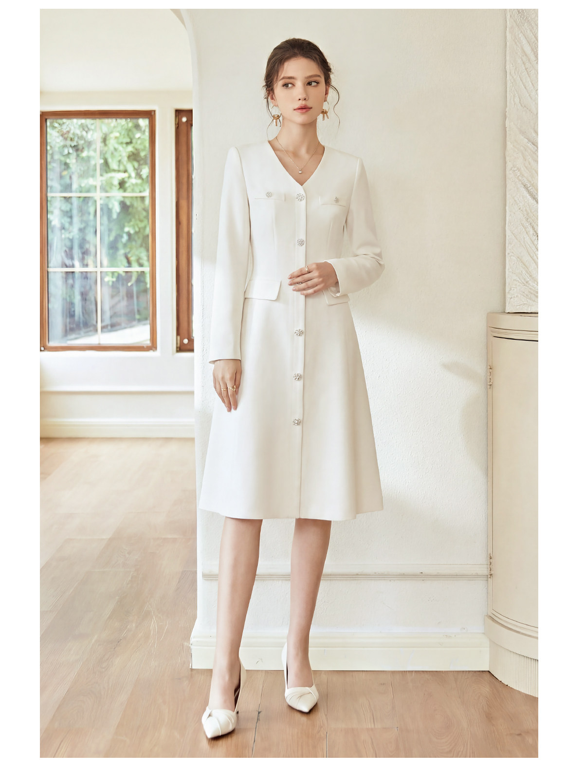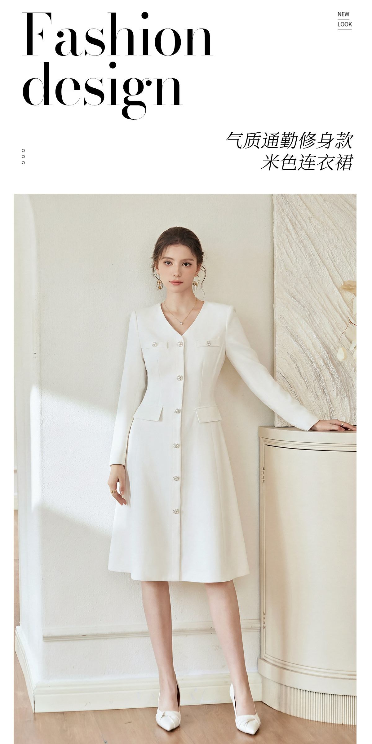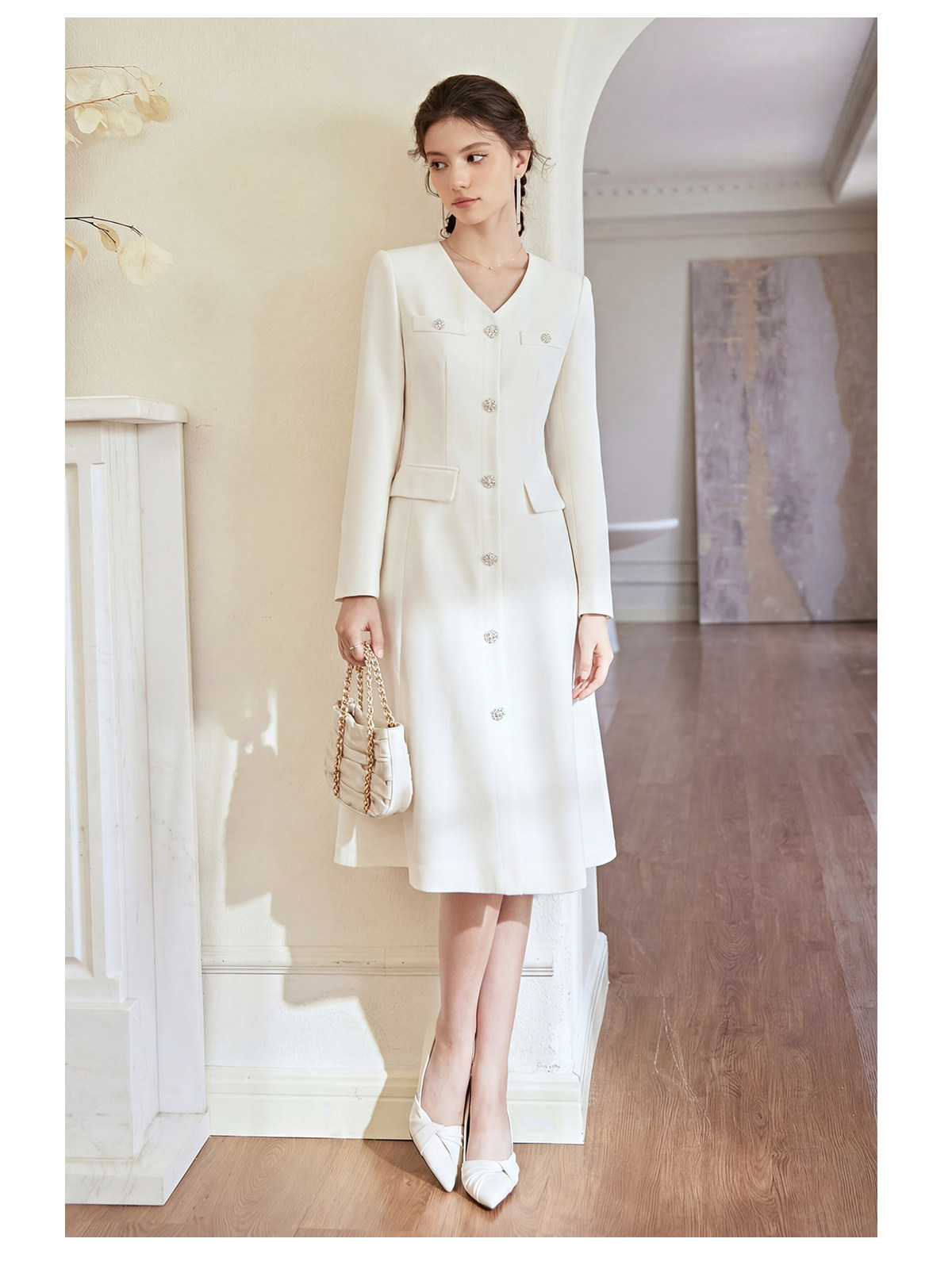 IWY/轻奢小香风白色连衣裙女长袖收腰气质工装裙正式场合西装裙WQ115