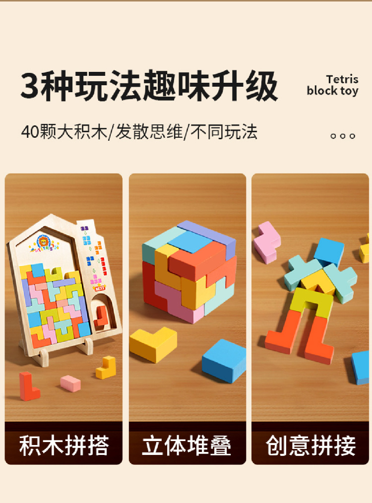 【3D立体俄罗斯方块】儿童玩具大颗粒积木拼图 早教儿童益智训练男女孩拼装玩具