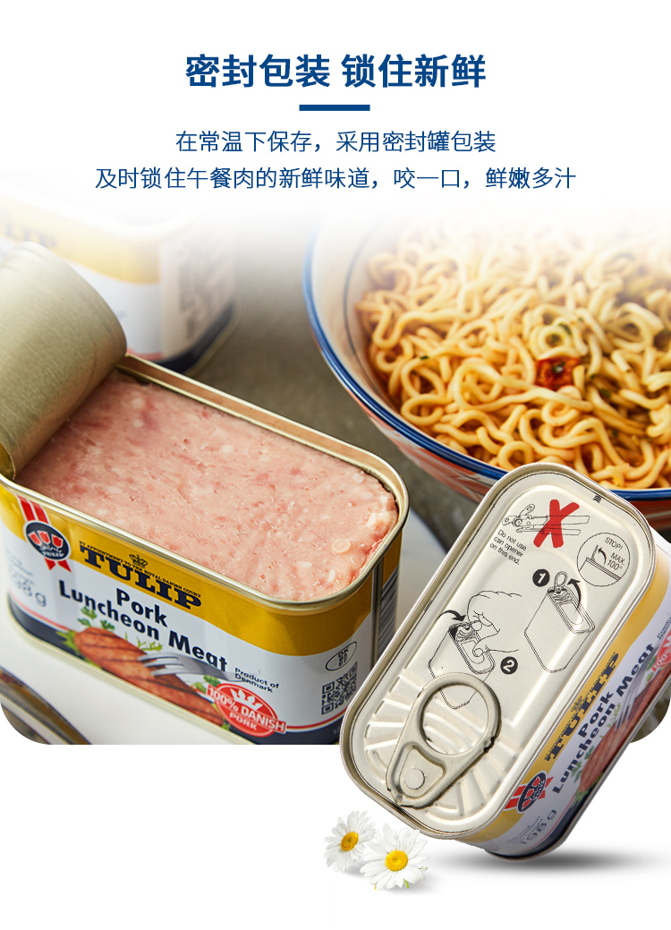 丹麦郁金香经典午餐肉198g/340g 密封包装锁住新鲜口味清淡健康美味 033337/033332