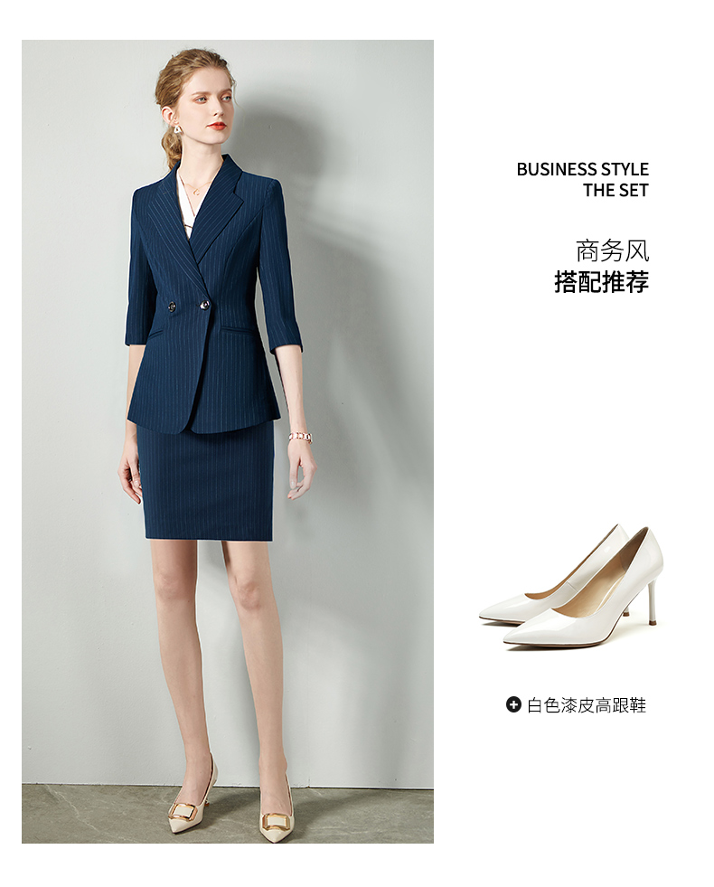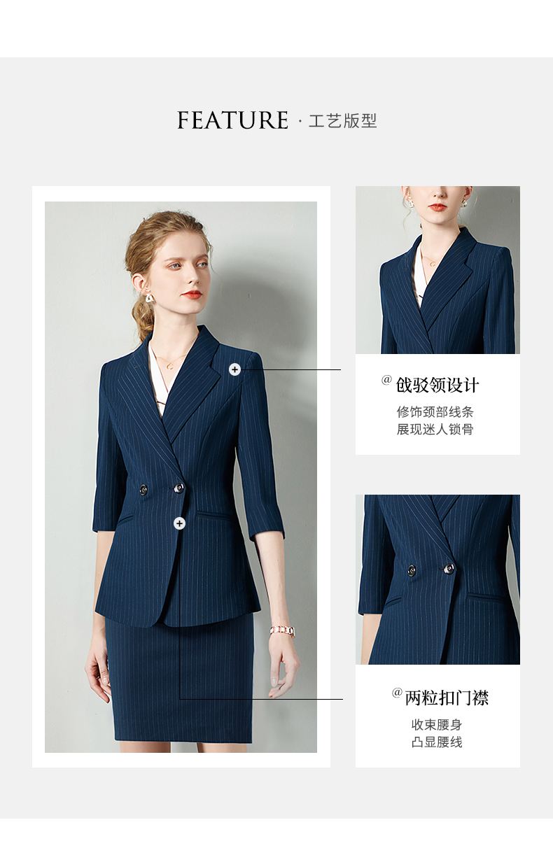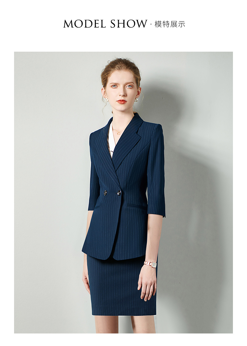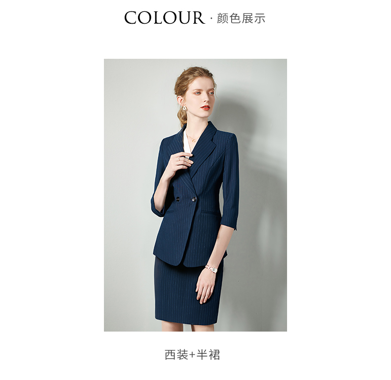 IWY/藏青七分袖职业女裙工装宽松高级工服气质款修身版ol轻熟C10345+S10345