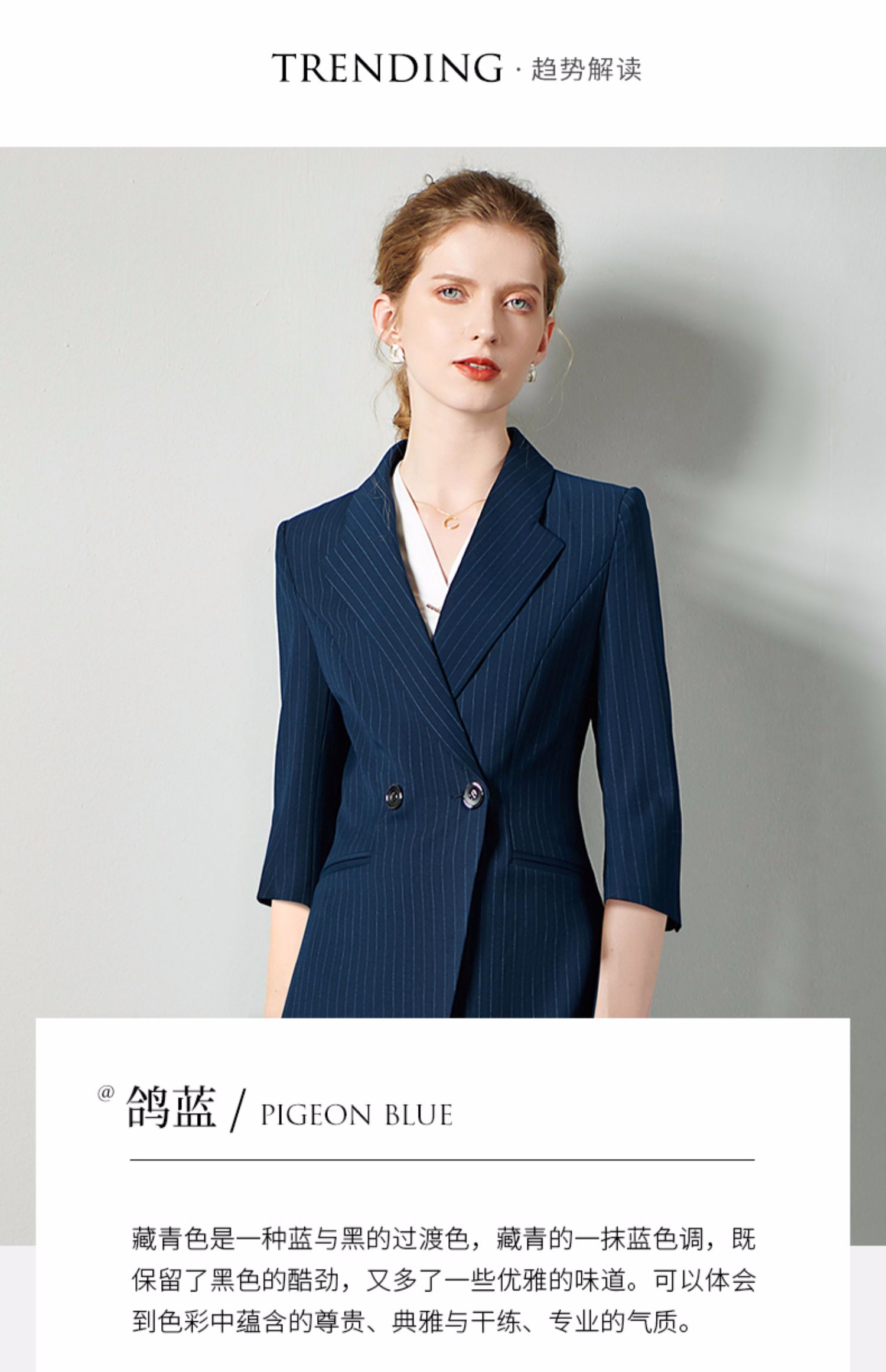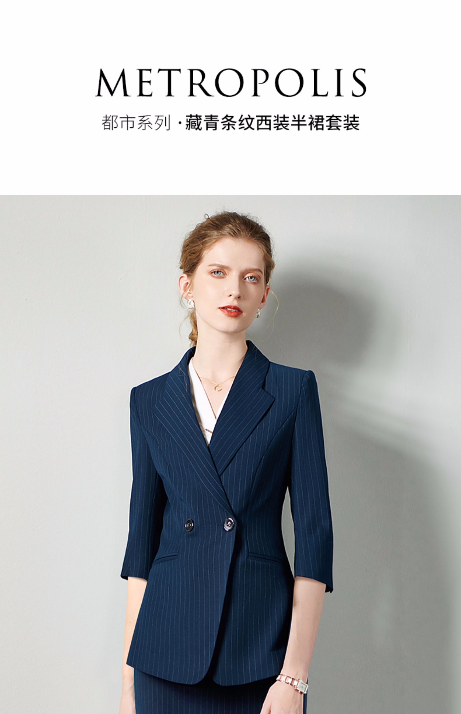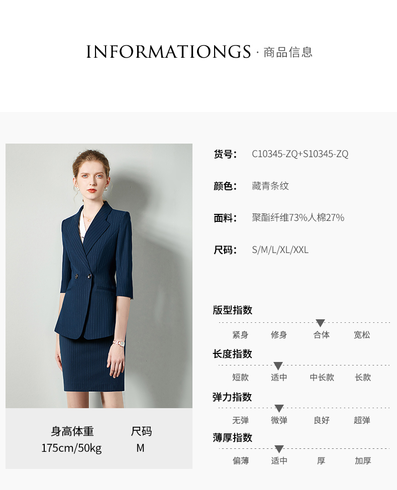 IWY/藏青七分袖职业女裙工装宽松高级工服气质款修身版ol轻熟C10345+S10345