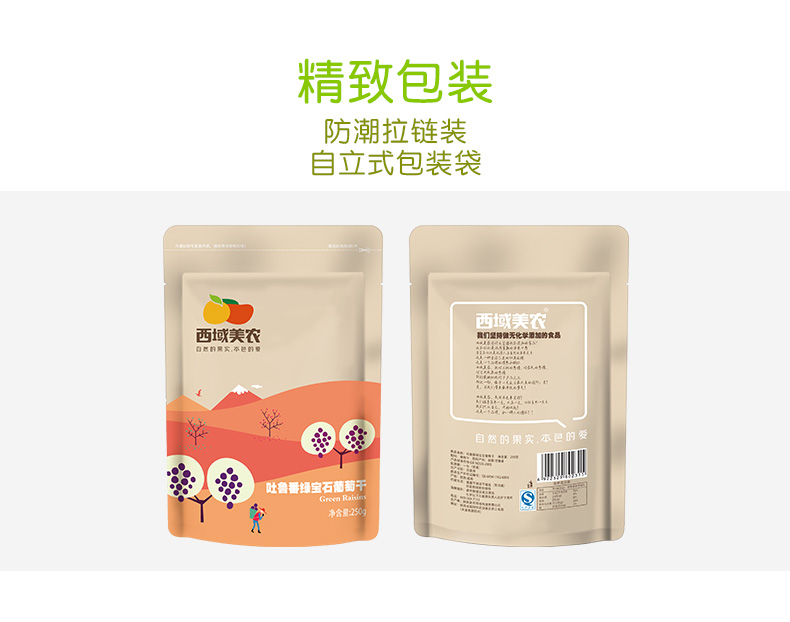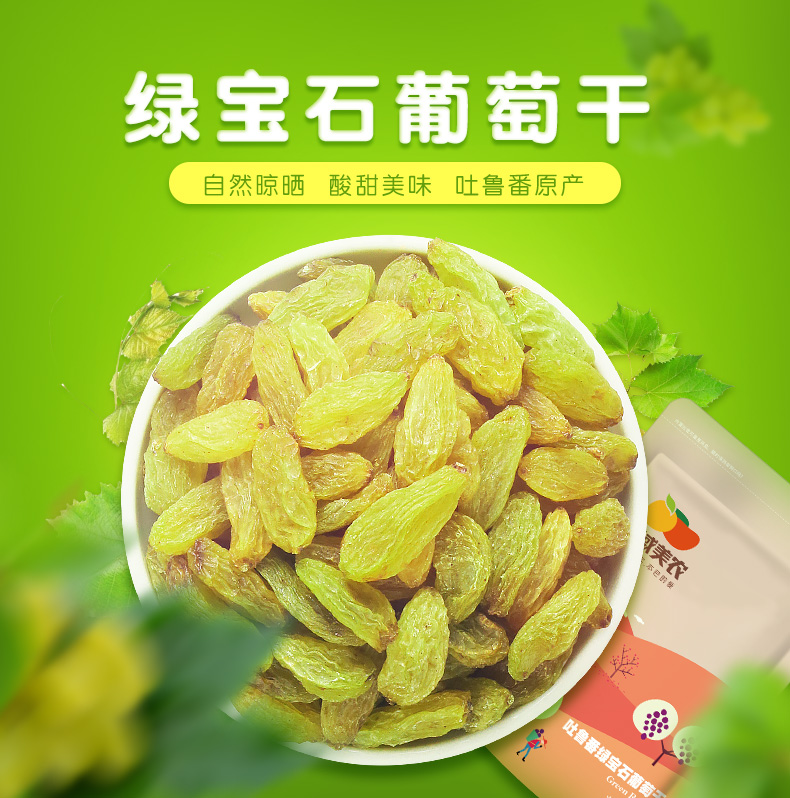 【满199-100】新疆特产吐鲁番绿宝石葡萄干250g。