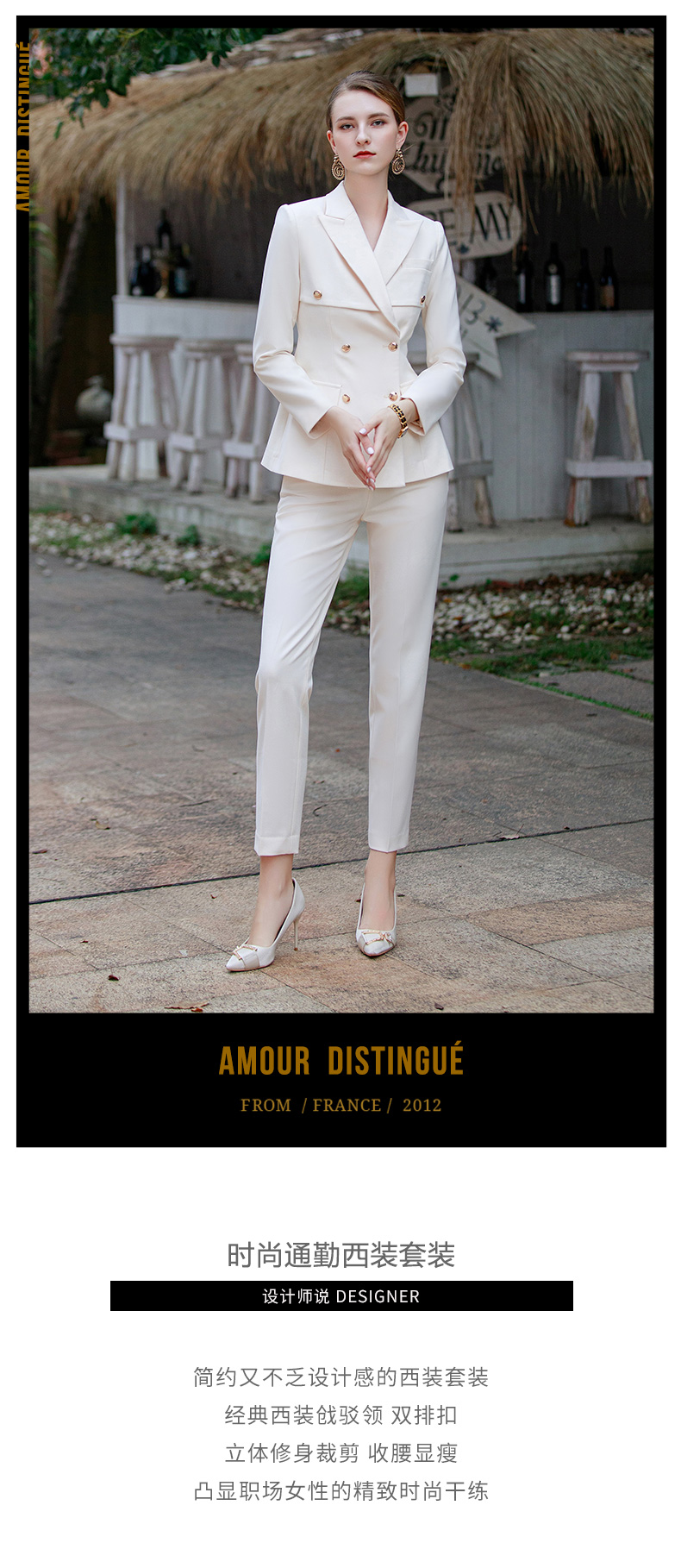 IWY/春季西装套装女2023新款两件套时尚气质职业高级感休闲白色西服CP1616