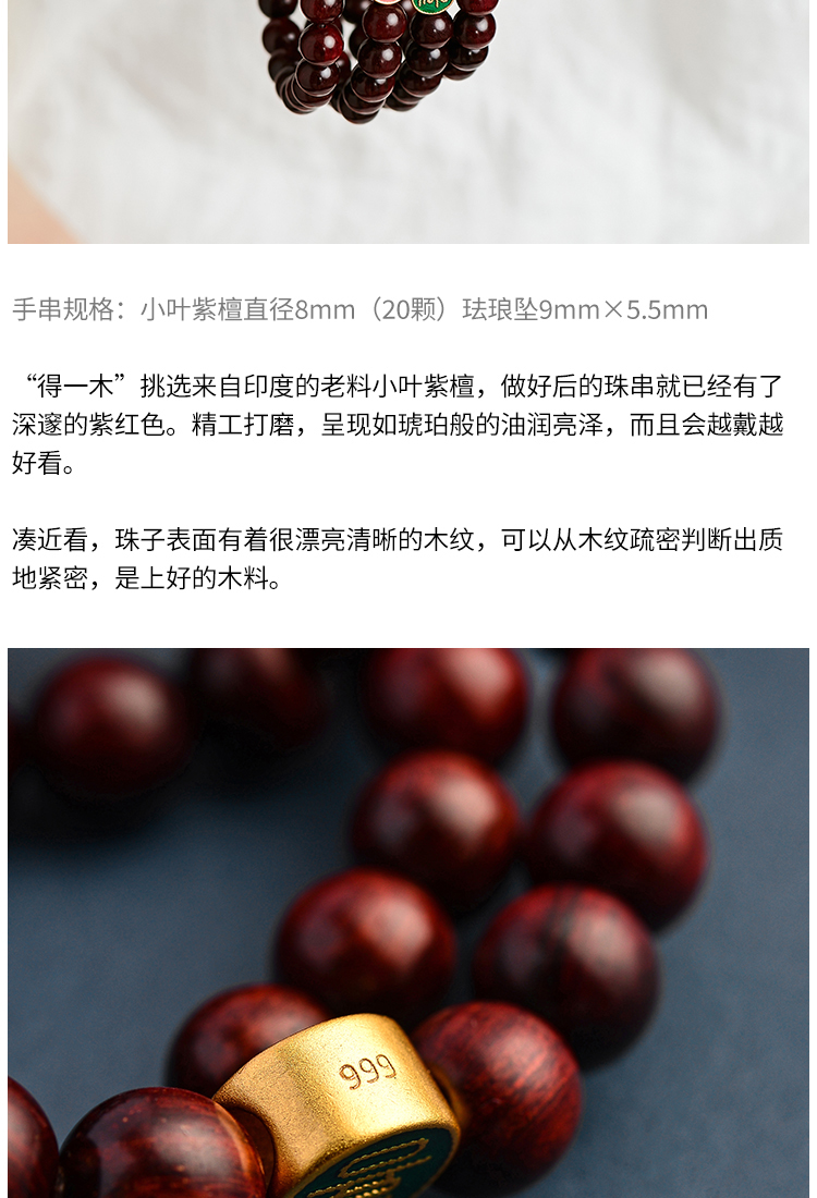 平安喜乐 珐琅檀木手串