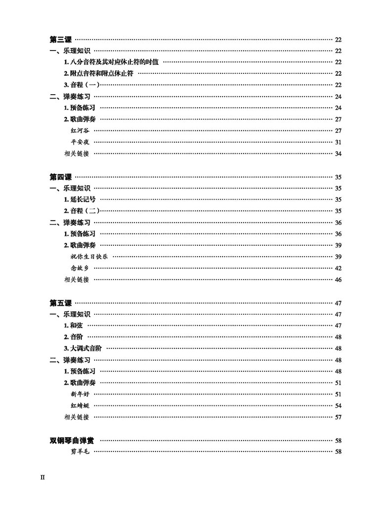 本套图书既能让成年人在熟悉的旋律中,快速掌握钢琴弹奏的基本技能,又能让成年的钢琴学习者在较短的学习时间内,运用所学的弹奏知识与技巧,进行自配歌曲伴奏,享受音乐带来的无穷乐趣。