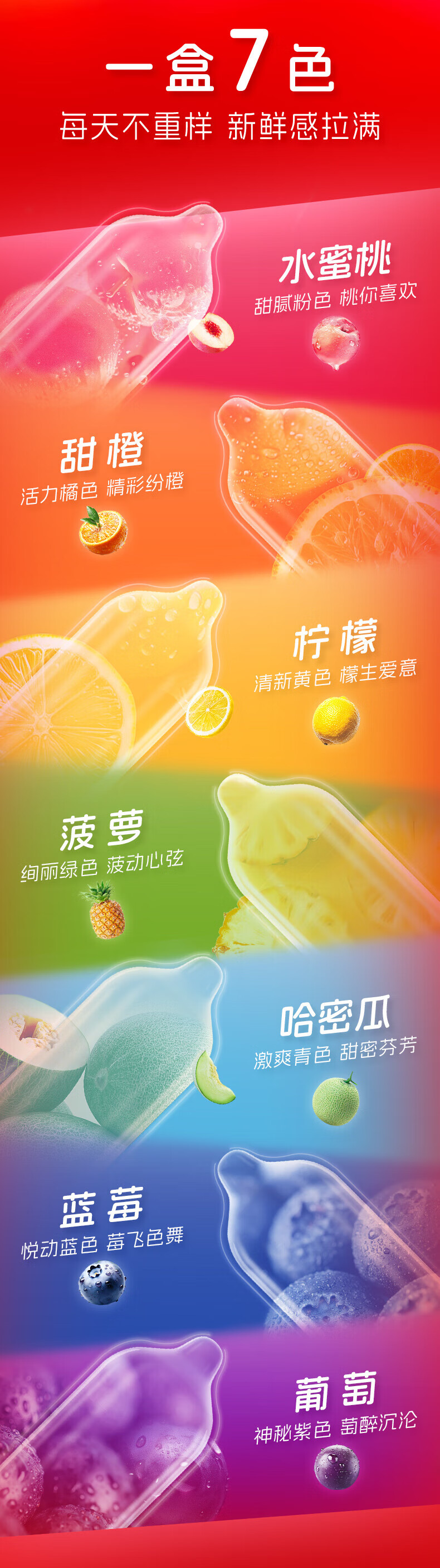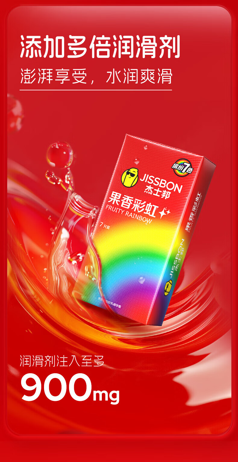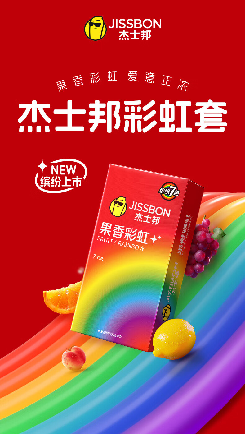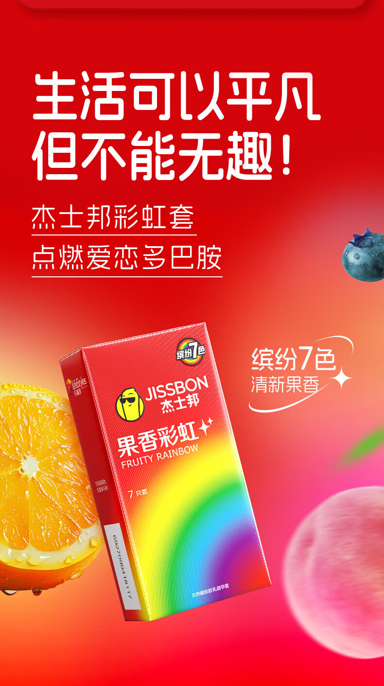 杰士邦 果香彩虹避孕套 超薄安全套 隐形裸入 数字薄 情趣超润滑套套 【7种体验】彩虹套7只