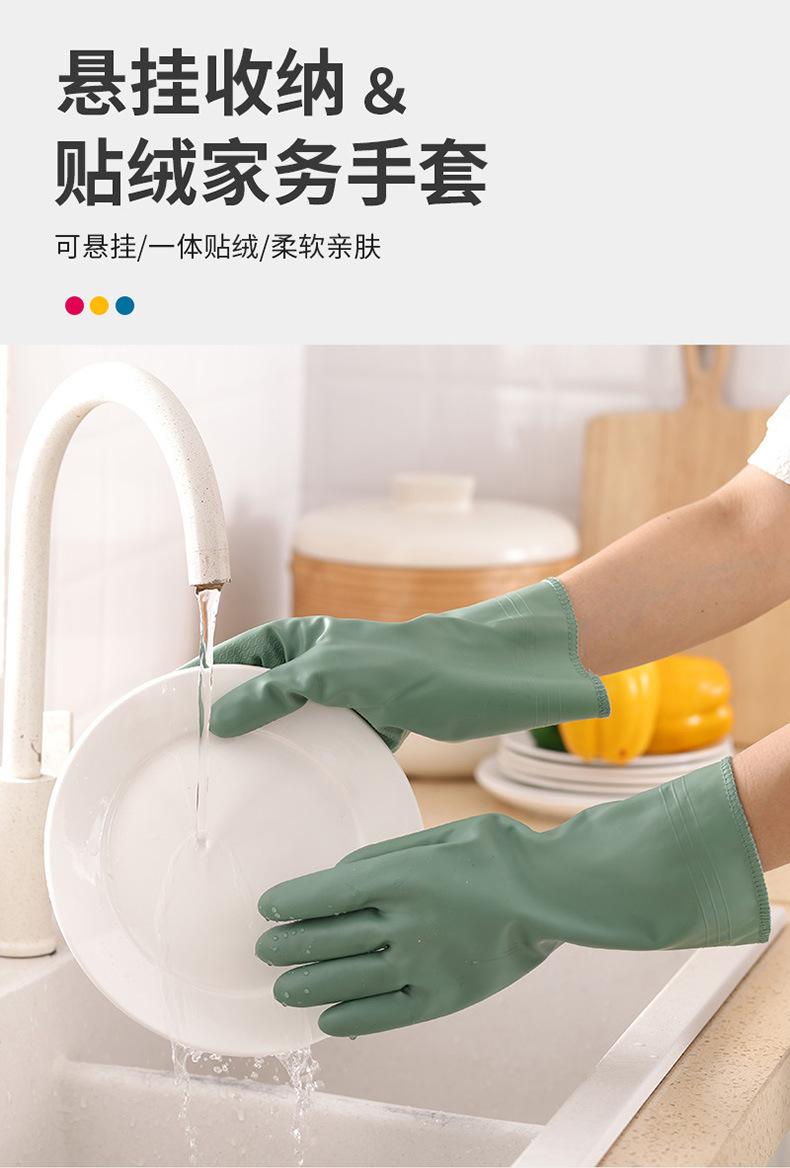 【悬挂收纳!贴绒家务手套】冬季加绒洗衣手套耐用家用清洁防水加厚家务厨房洗碗手套橡胶,洗碗刷锅不冻手,防滑不易掉落,让你感受不到冰凉。ry