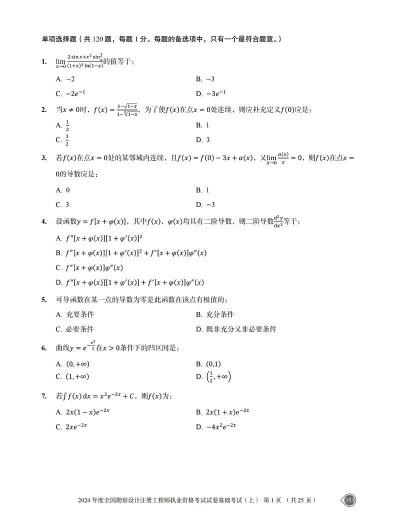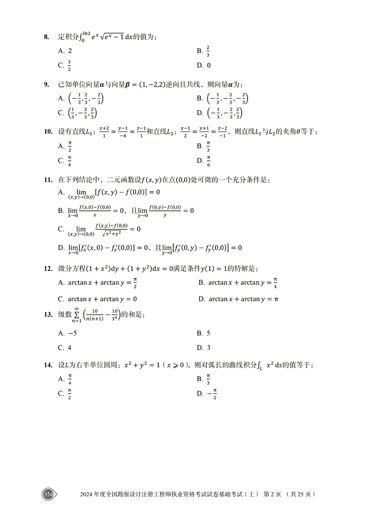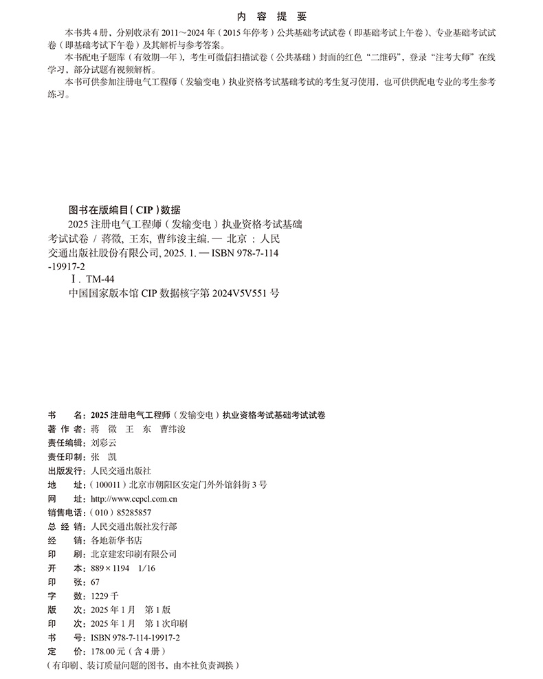 书名:2025注册电气工程师(发输变电)执业资格考试基础考试试卷