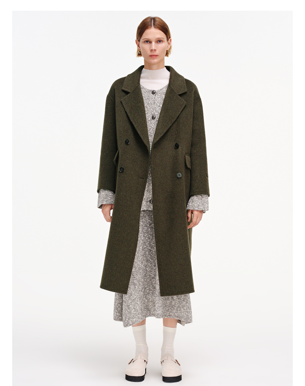 【舒系列】舒库100%绵羊毛毛呢大衣女年秋冬长款经典羊毛外套