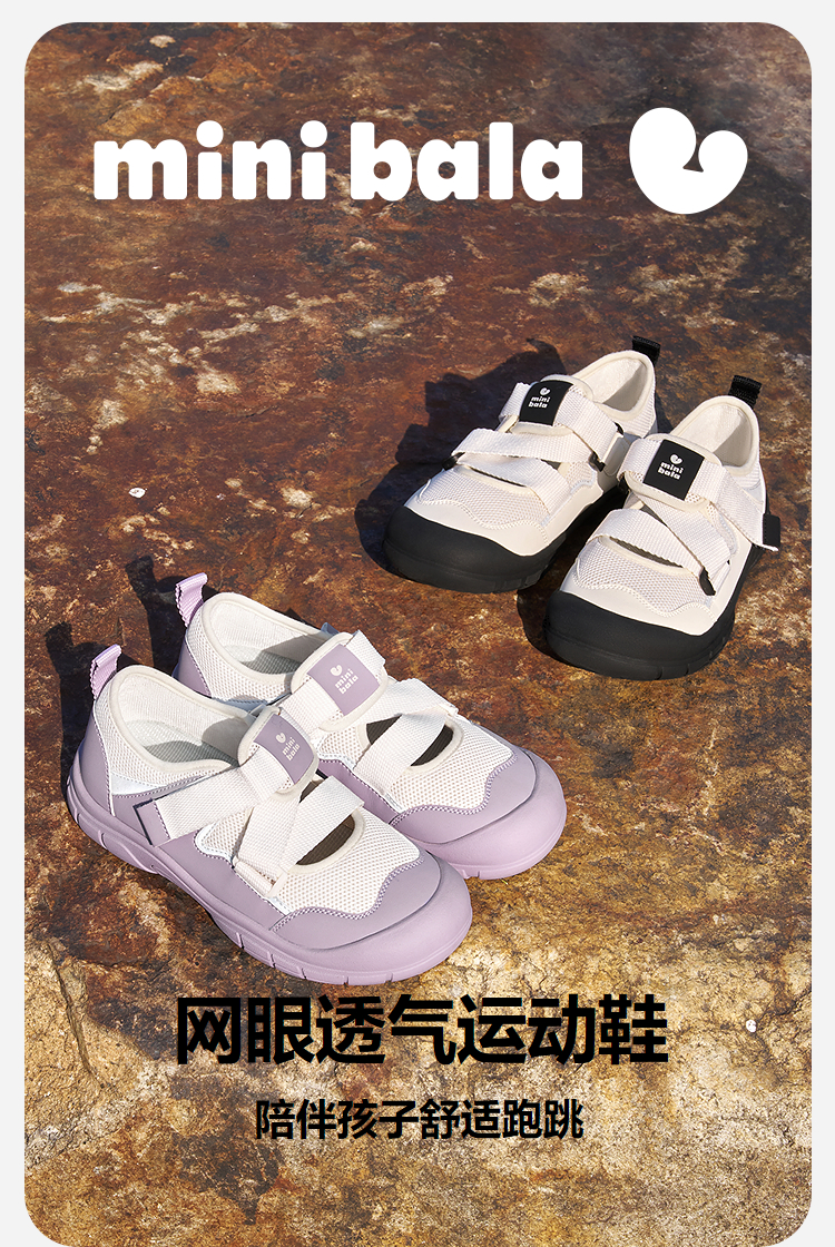 迷你巴拉男女童儿童魔术贴运动鞋止滑防摔轻便网眼透气舒适