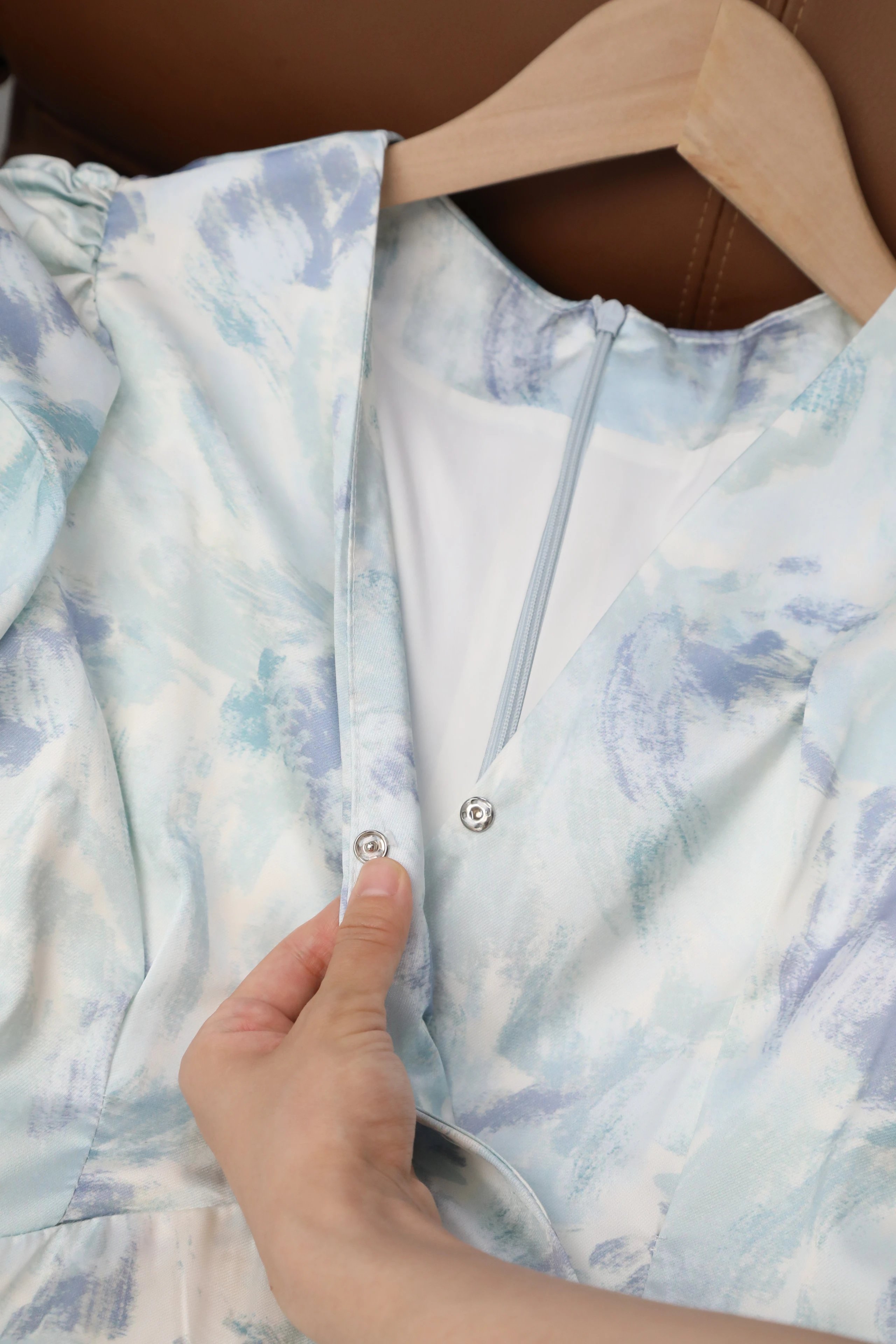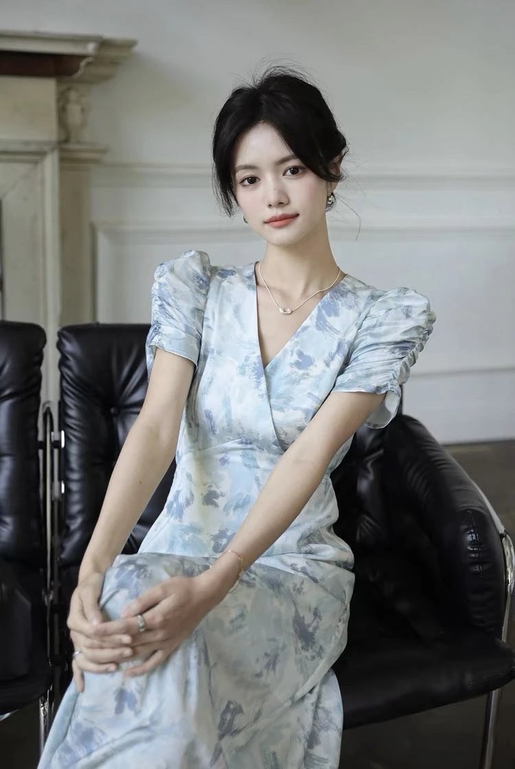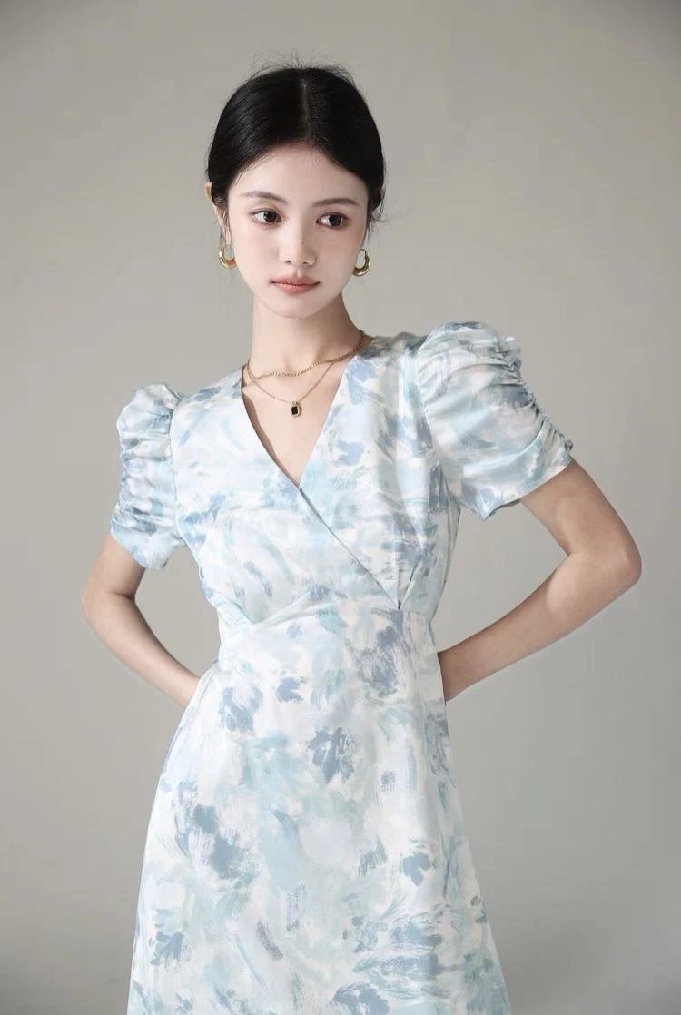 邂逅夏日浪漫这款浅蓝色印花连衣裙