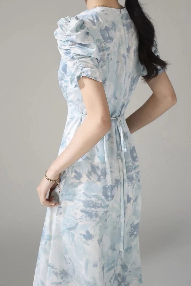 【商品品名】鸢尾漫蓝~印花连衣裙