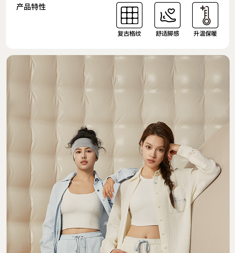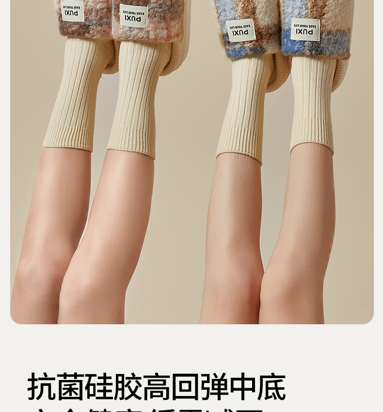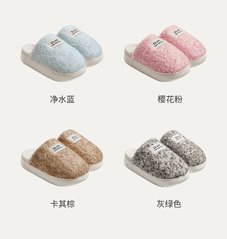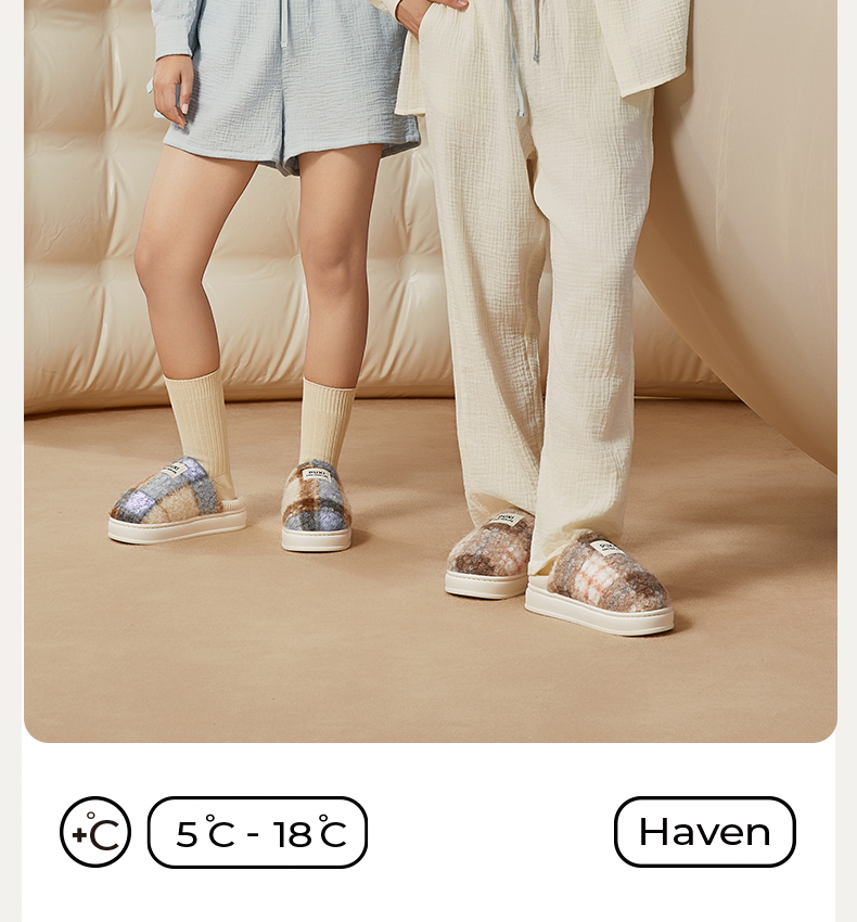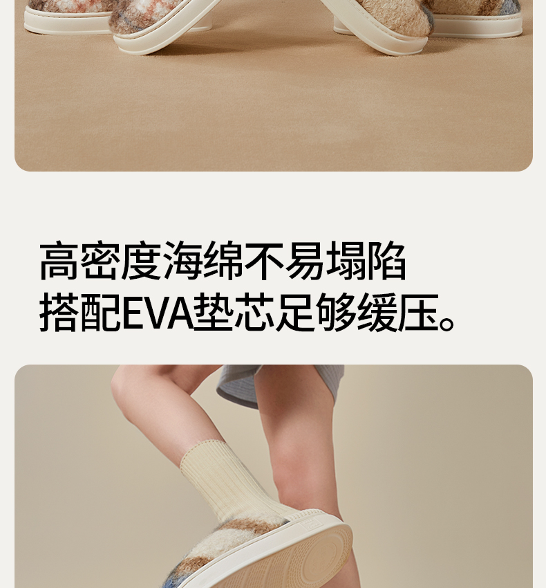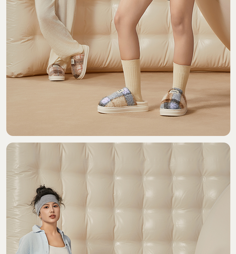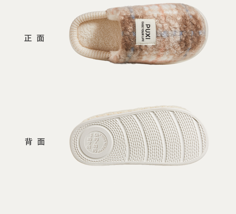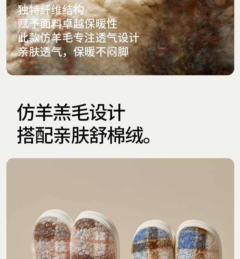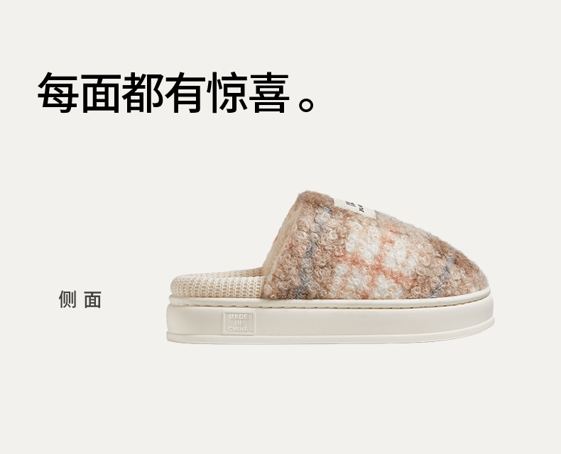 【专享】朴西空白格棉拖鞋女冬季家居保暖抗菌复古格纹加绒加厚拖鞋情侣