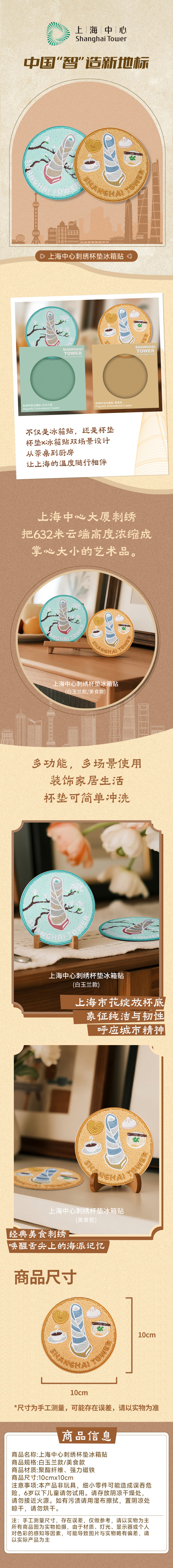 【632推荐】上海中心刺绣杯垫冰箱贴