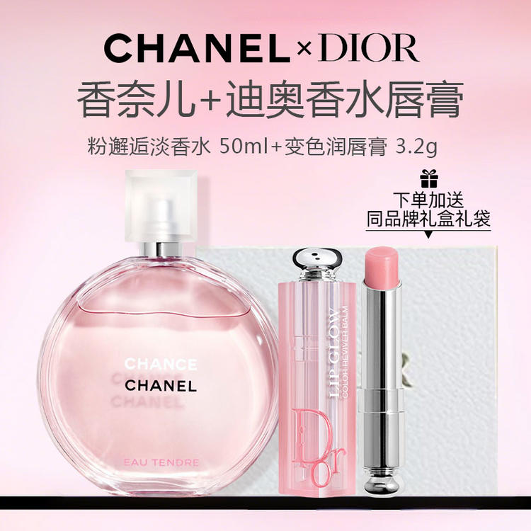 【 礼盒礼袋】CHANEL 香奈儿 邂逅系列 粉邂逅淡香水 50ml+ Dior 迪奥 变色魅惑润唇膏 3.2g