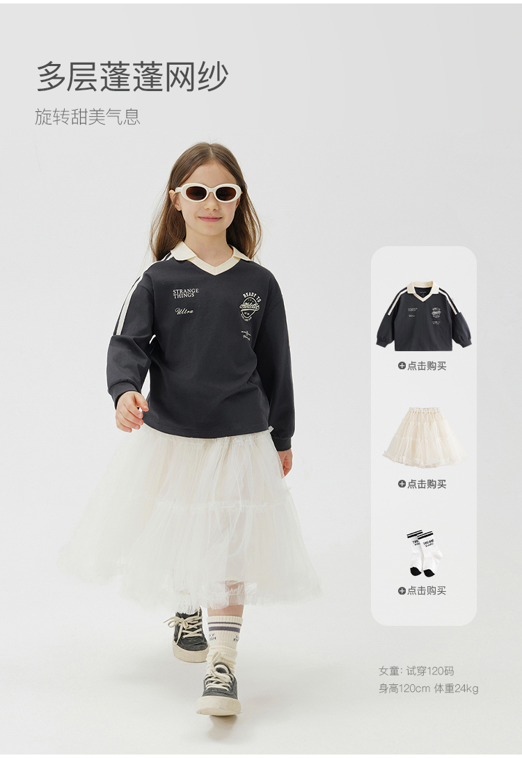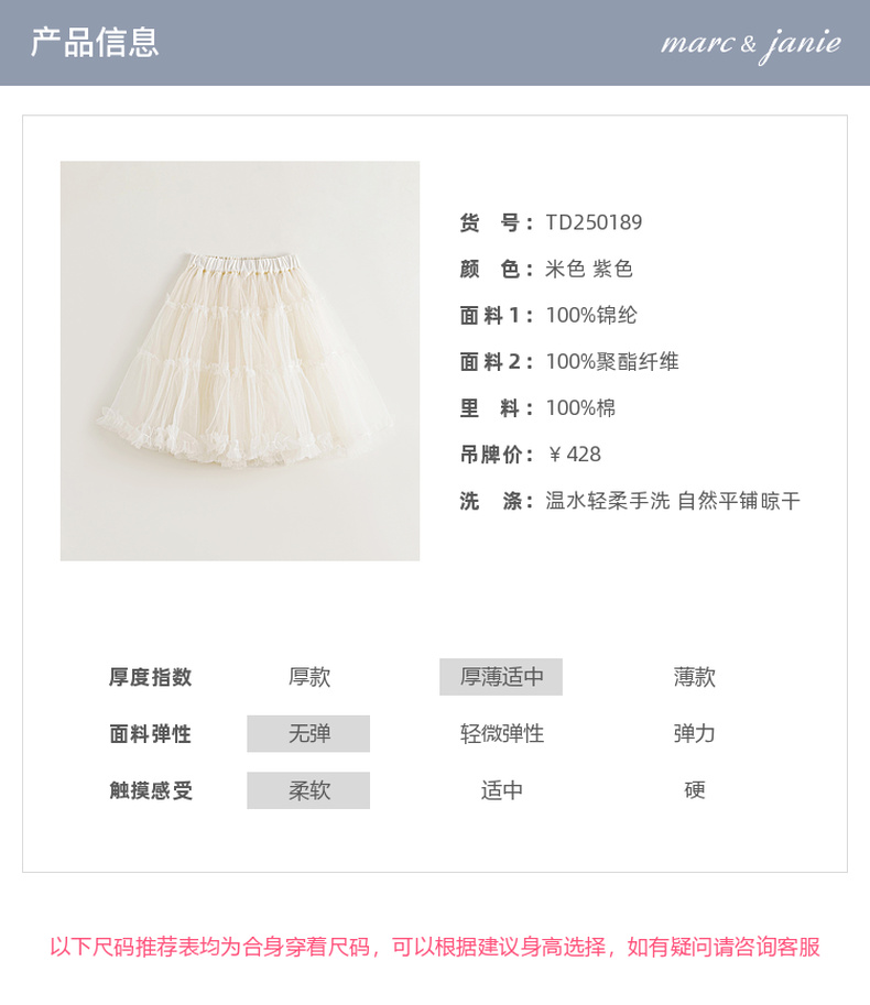马克珍妮女童甜美蓬蓬网纱半裙儿童裙子短裙2025年春装新款250189