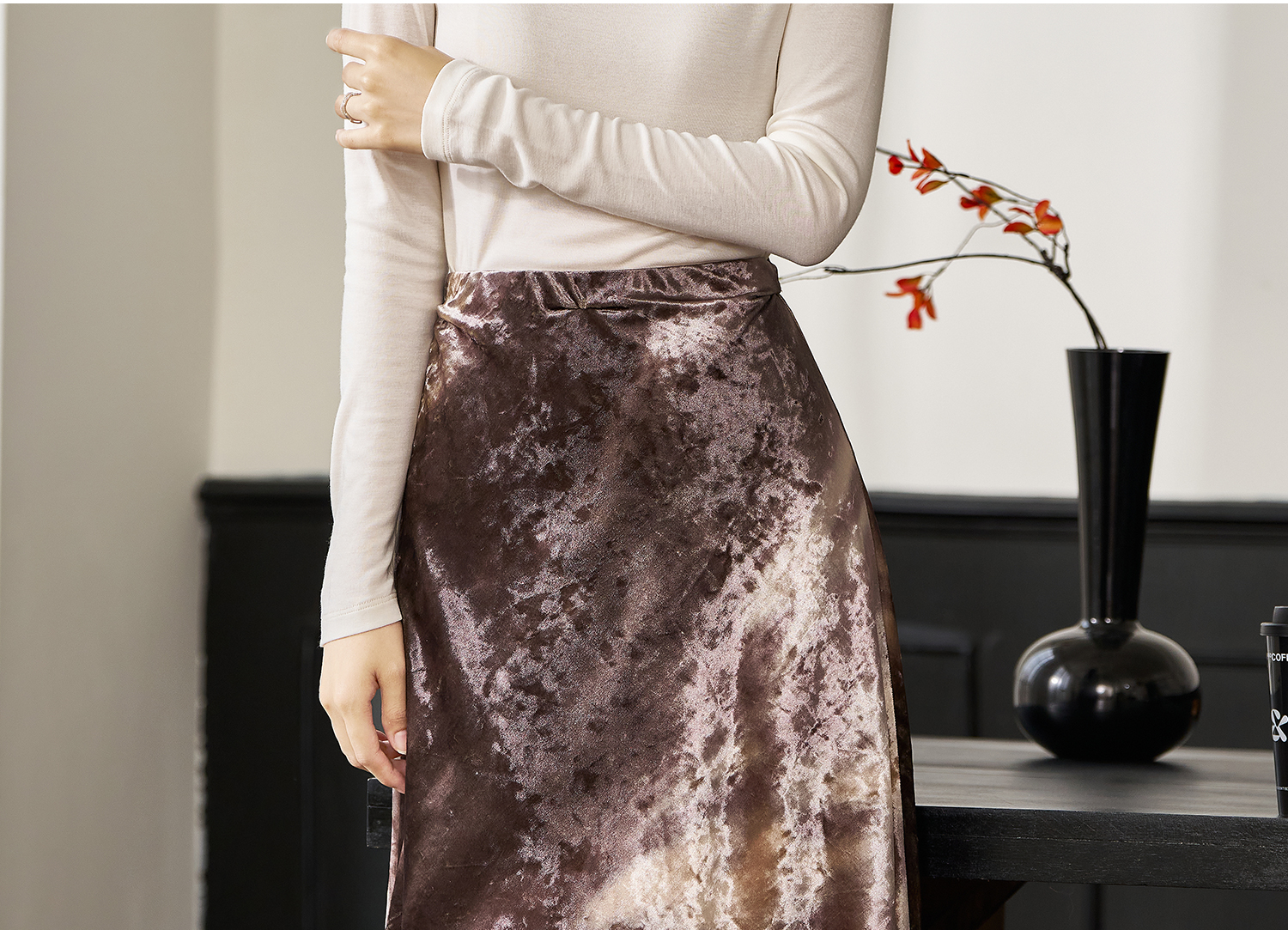 剩M 【抽象艺术丝绒半裙】米思阳2025秋季新品轻奢质感丝绒半裙 时尚锁温半身裙