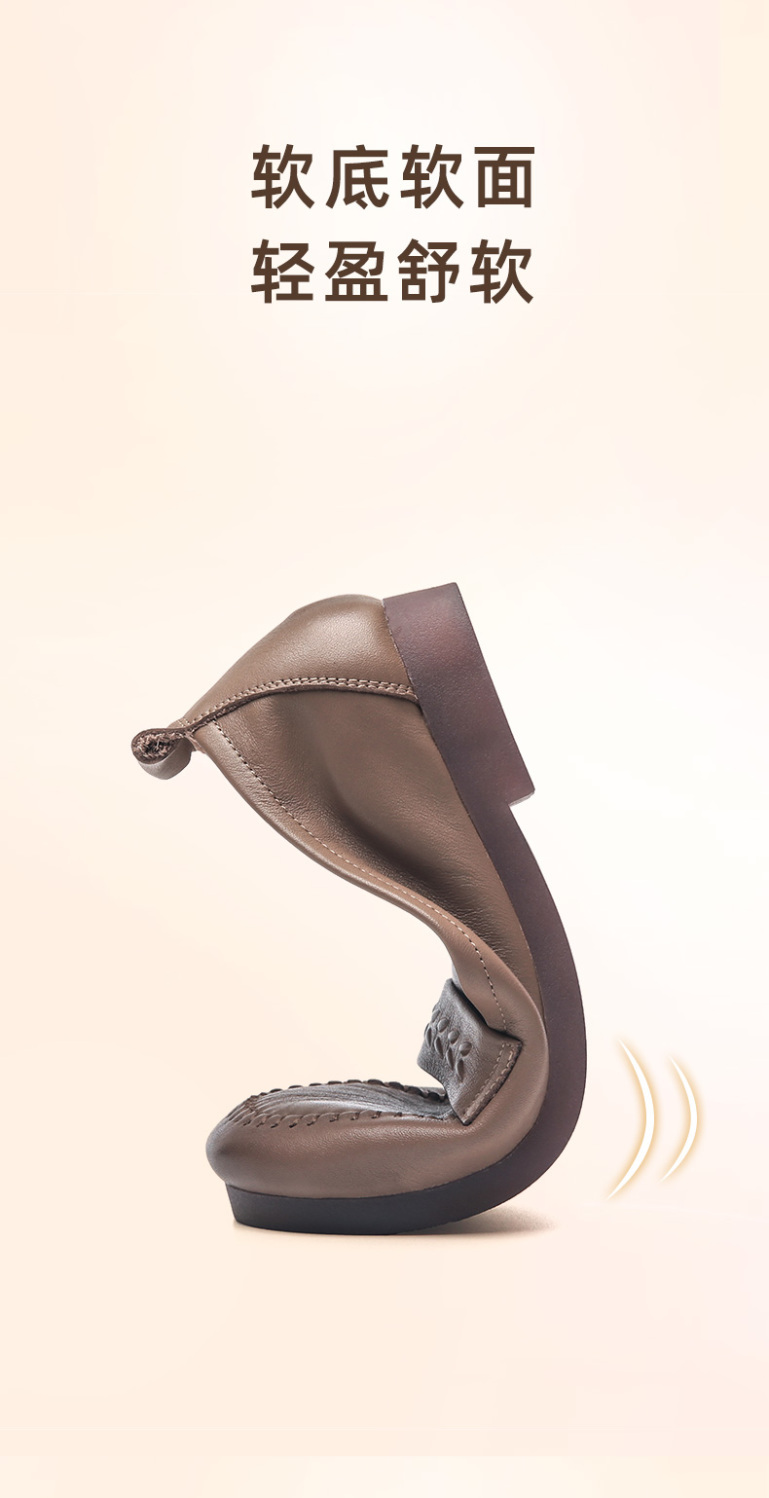 信诺女鞋2023秋季新款真皮妈妈鞋子女软底时尚休闲透气舒适乐福鞋23Q5353-3