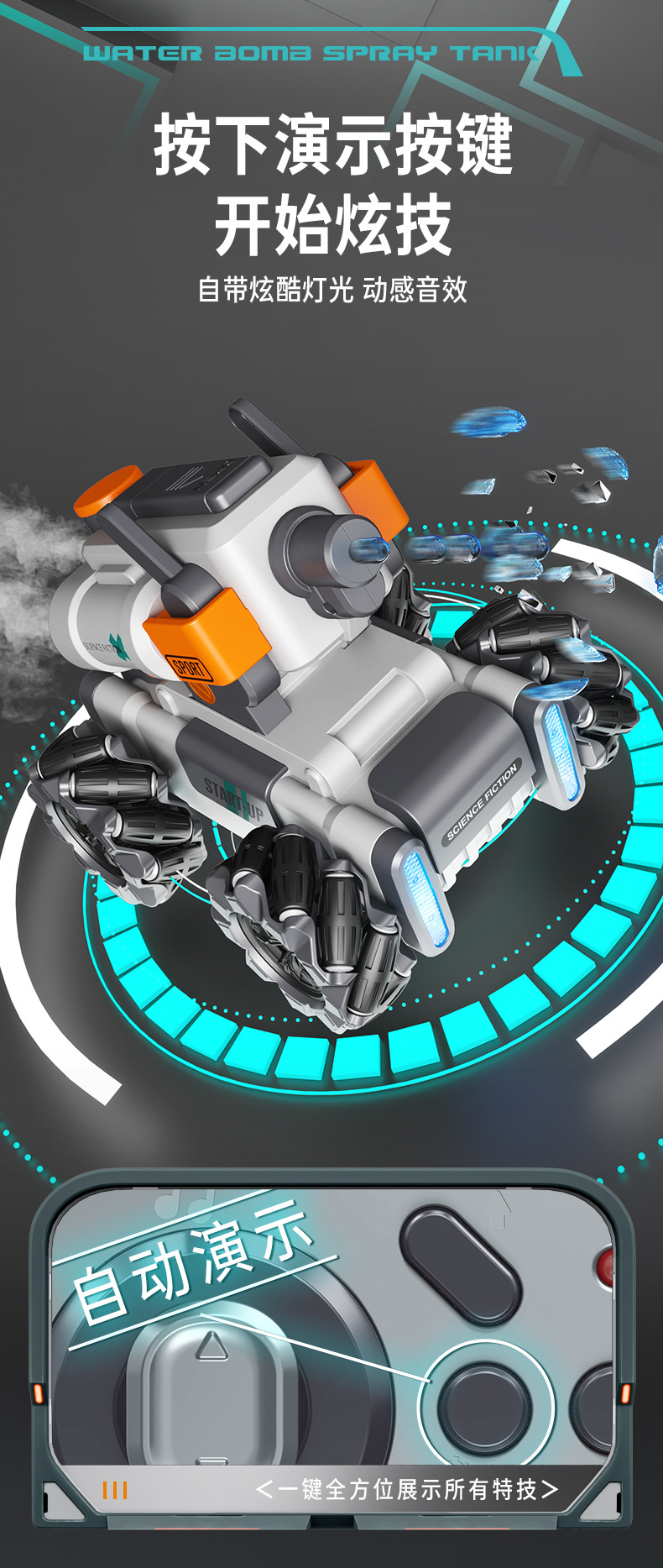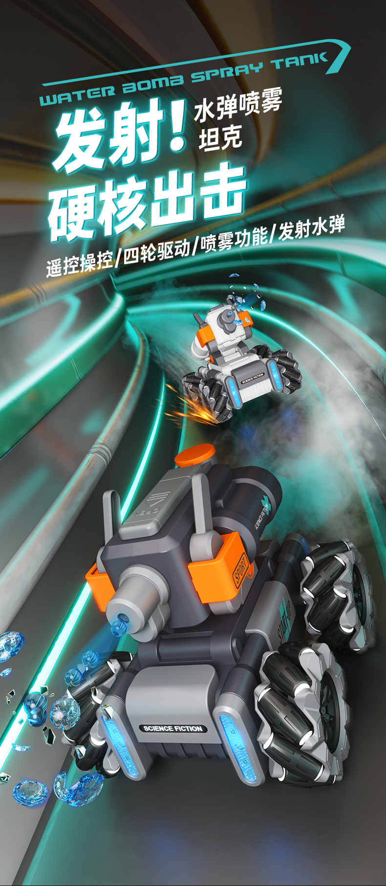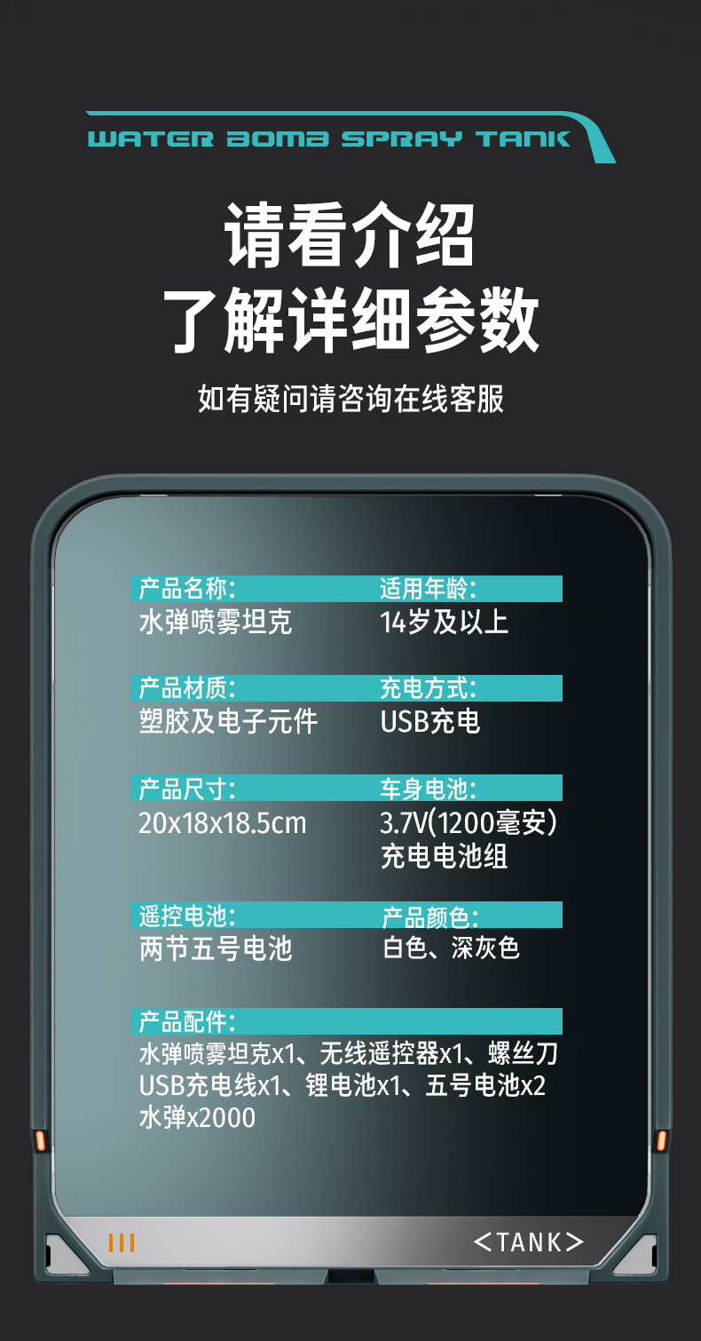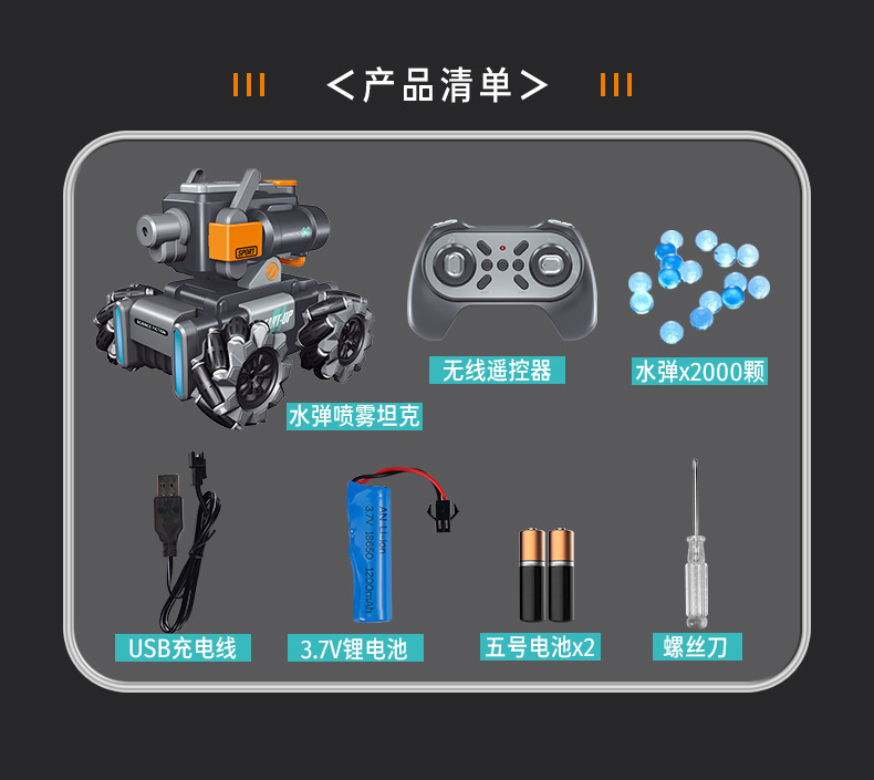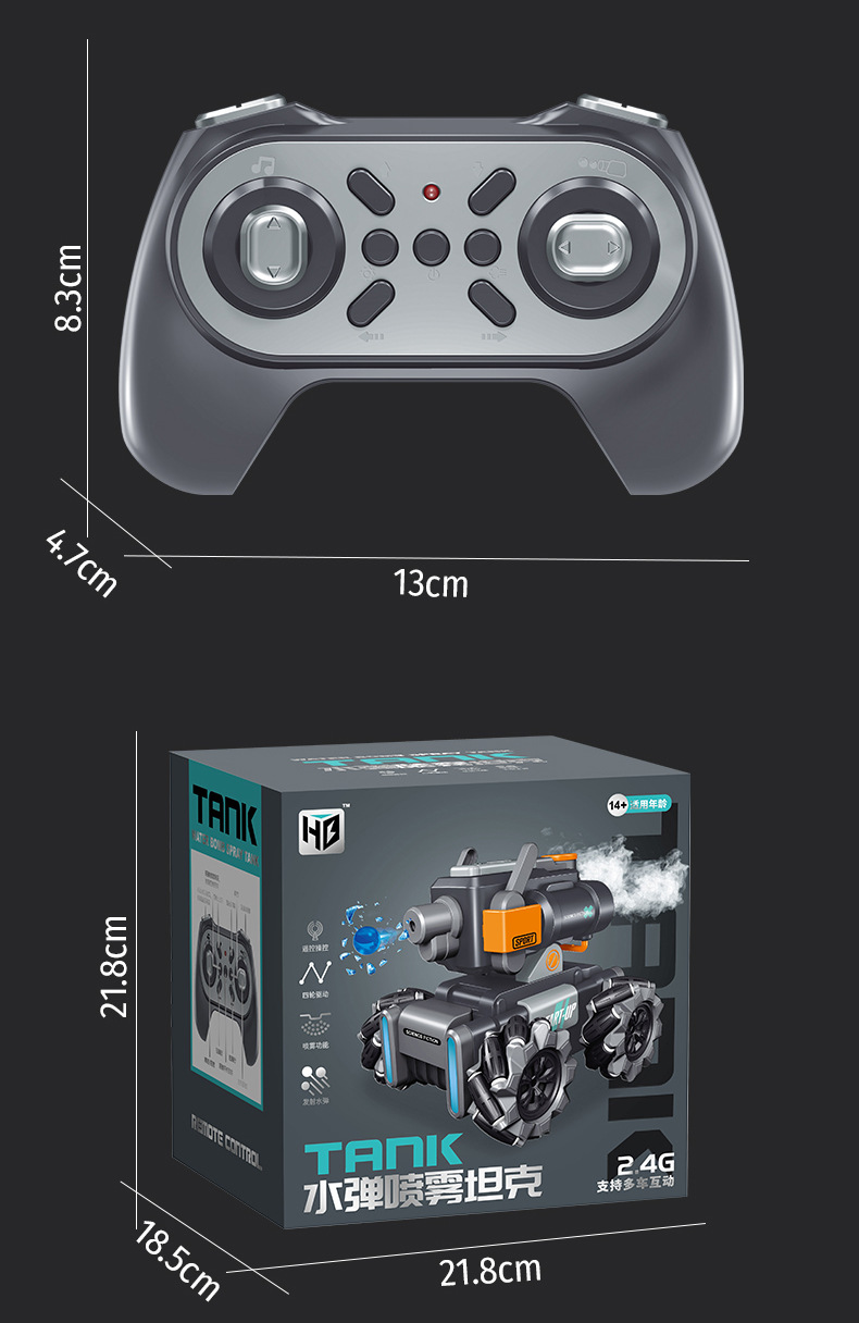 【喷雾遥控发射坦克车】儿童喷雾坦克遥控车可发射水弹电动坦克汽车对战玩具